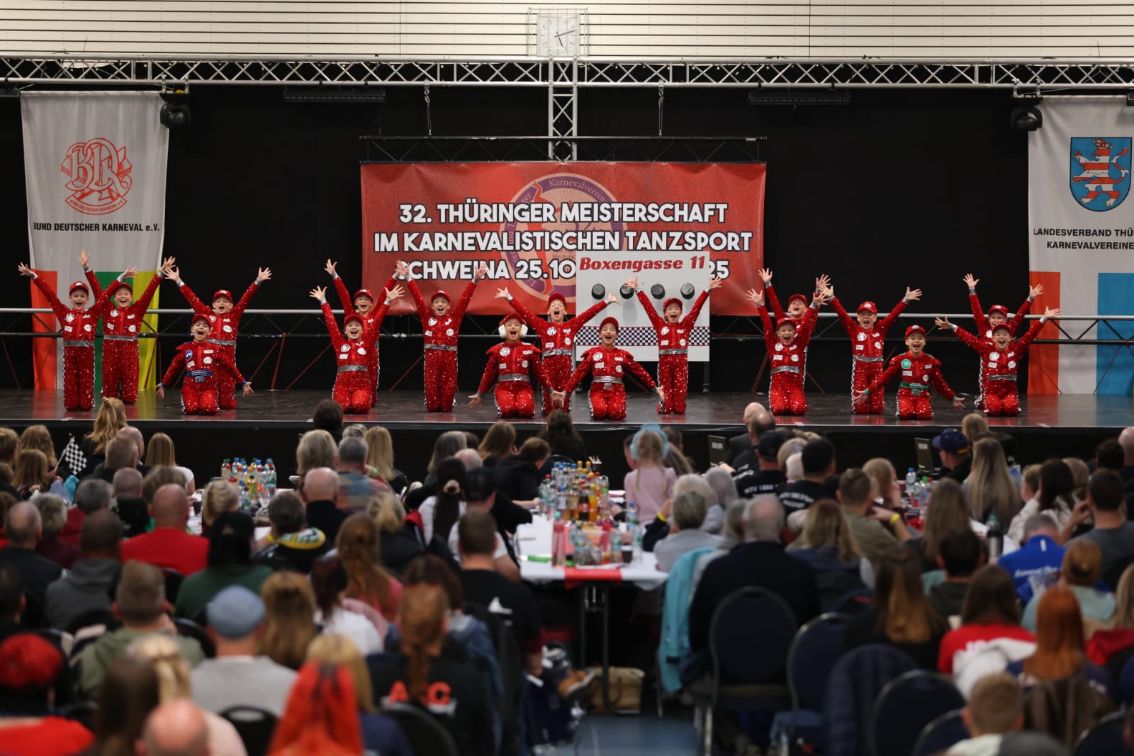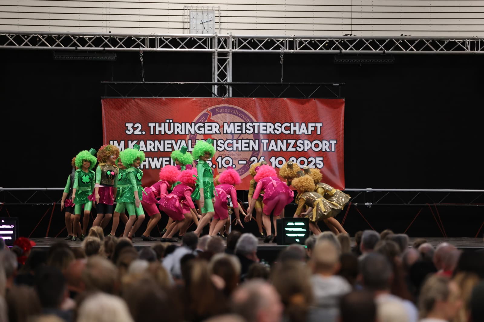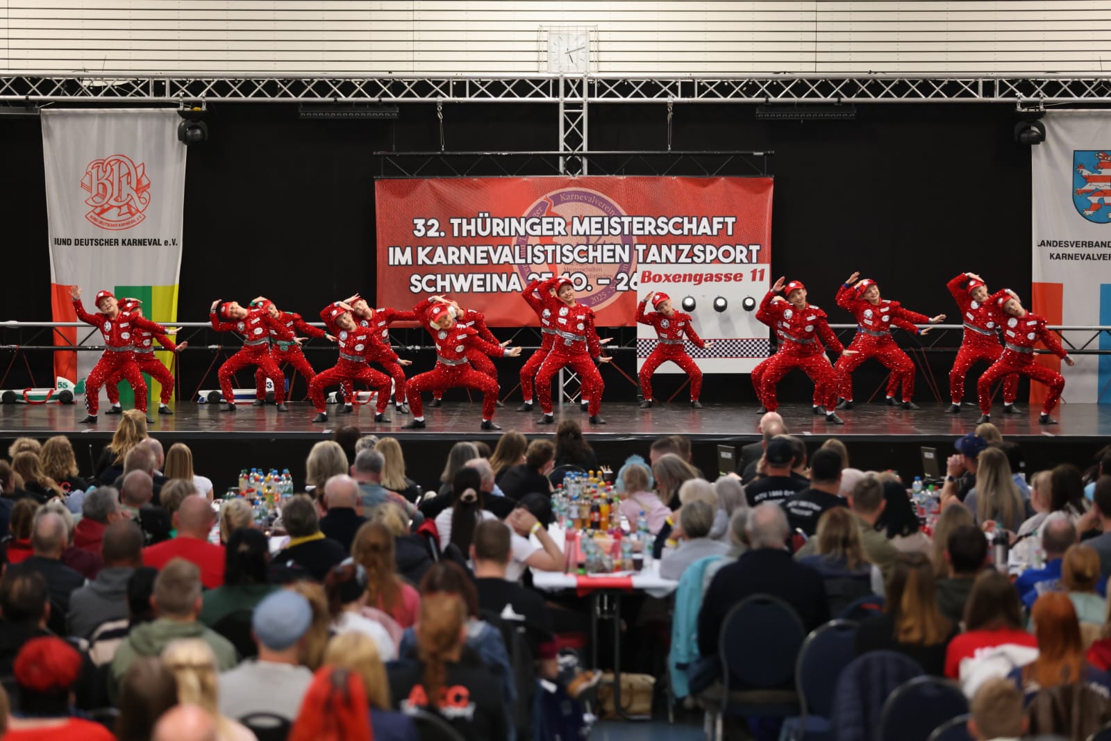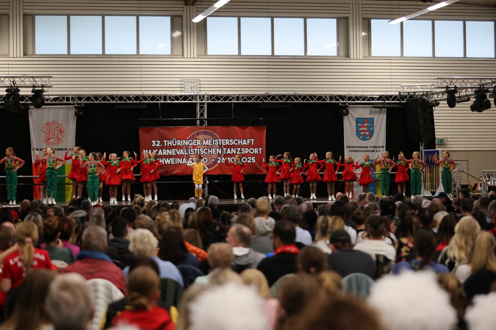 Schweina – Das vergangene Wochenende der 32. Thüringer Meisterschaften im karnevalistischen Tanzsport wird den Teilnehmenden, Zuschauenden und dem Landesverband Thüringer Karnevalvereine e.V. (LTK) sicherlich noch lange in Erinnerung bleiben. Vom 25. und 26. Oktober fanden die Meisterschaften erstmals in der Friedrich-Fröbel-Halle in Schweina statt und wurden vom Schweinaer Karneval Verein e.V. organisiert und ausgerichtet. Sie boten nicht nur sportliche Höchstleistungen, sondern auch ein einmaliges Gemeinschaftserlebnis.