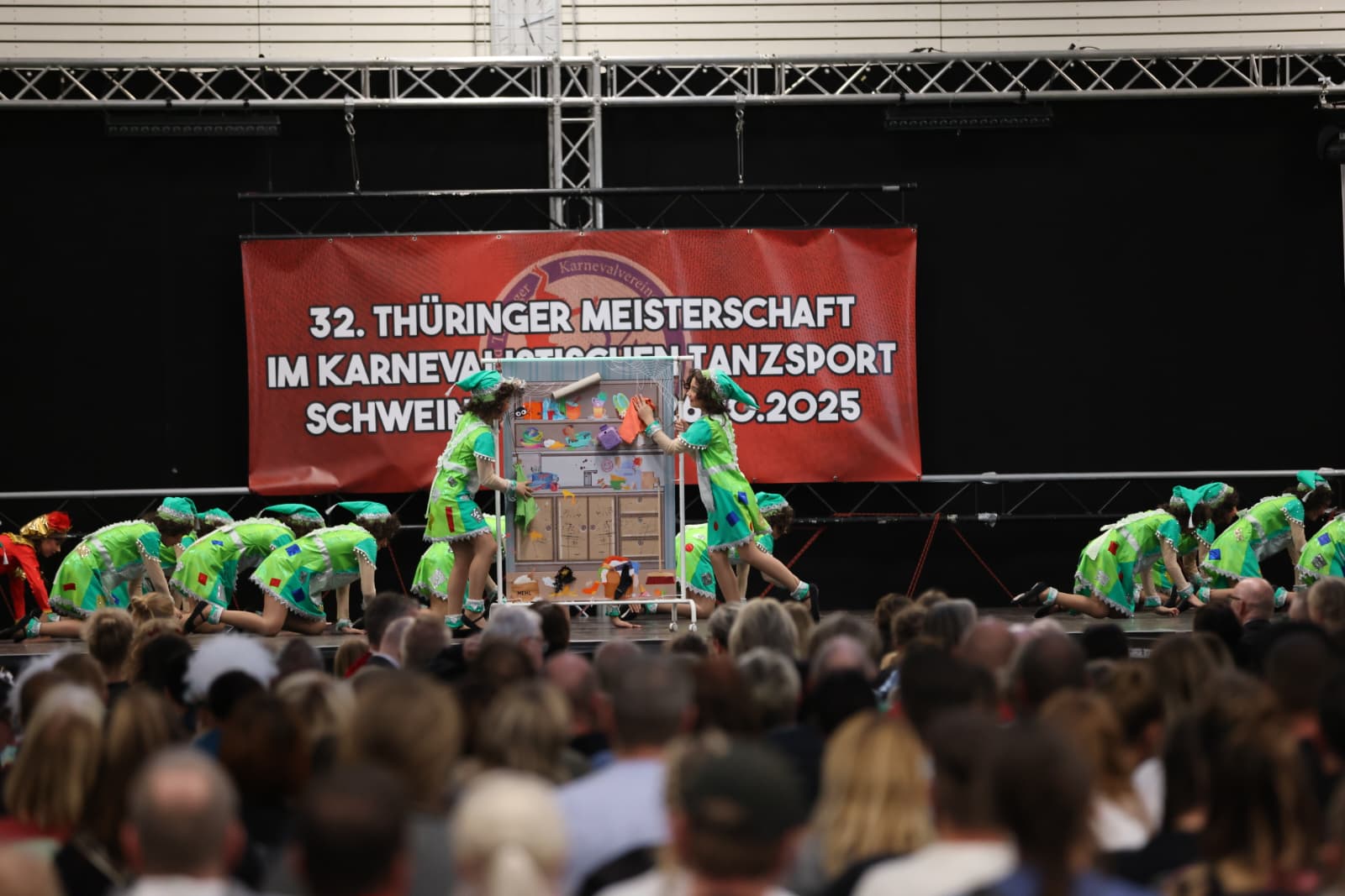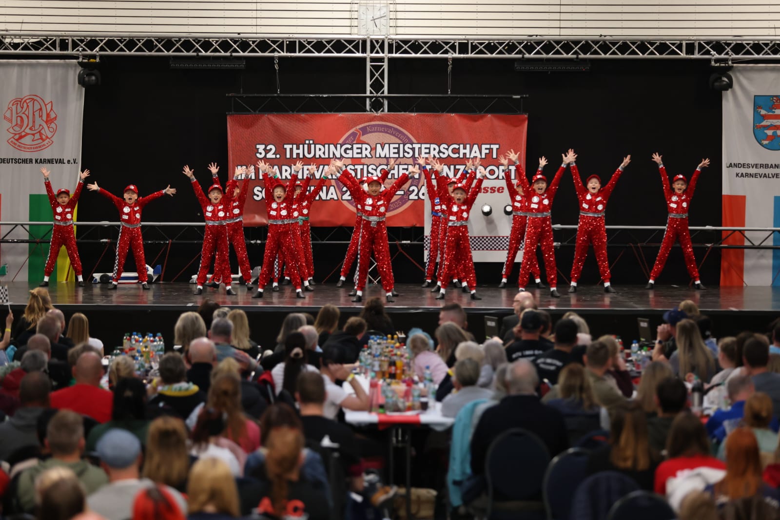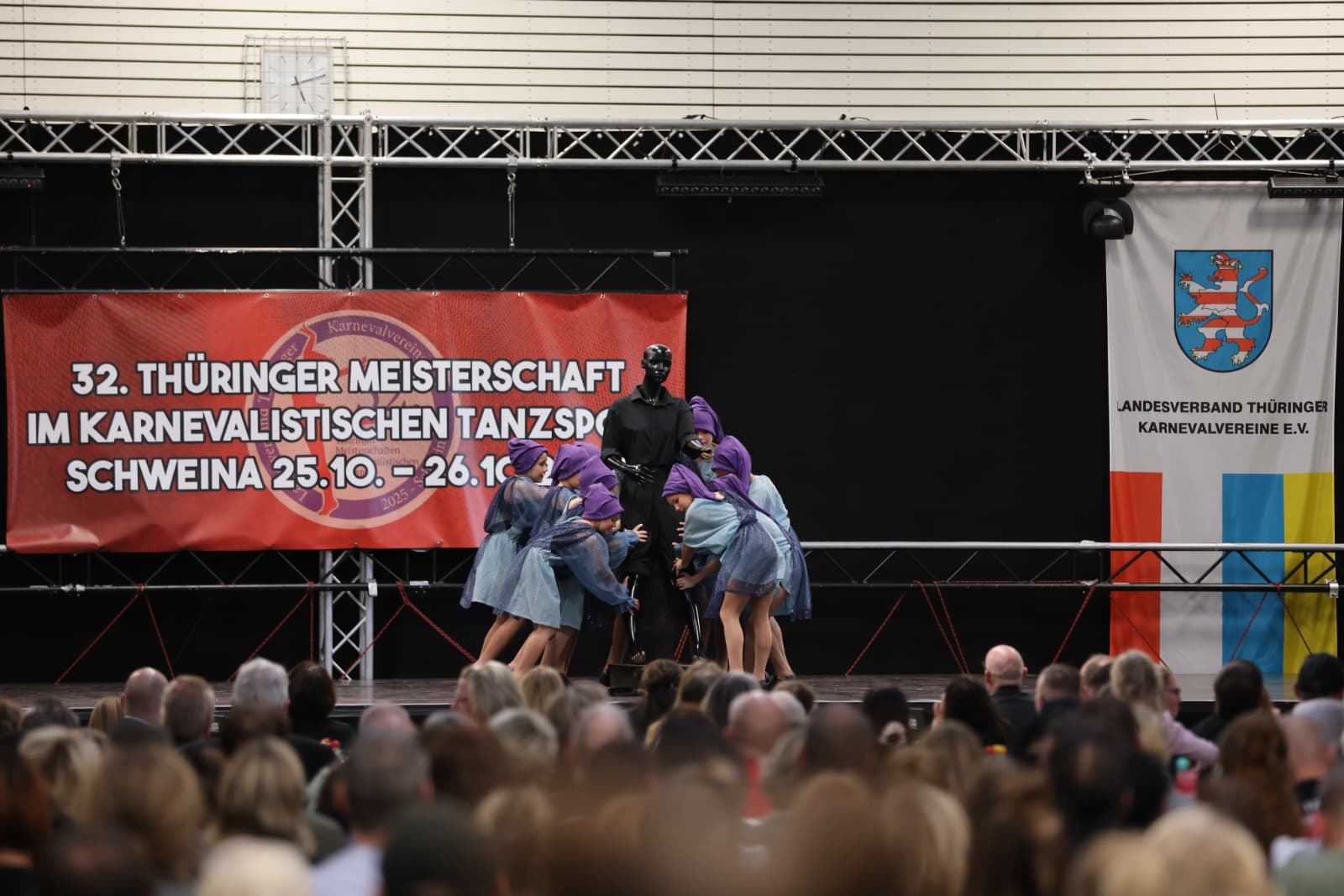 Schweina – Das vergangene Wochenende der 32. Thüringer Meisterschaften im karnevalistischen Tanzsport wird den Teilnehmenden, Zuschauenden und dem Landesverband Thüringer Karnevalvereine e.V. (LTK) sicherlich noch lange in Erinnerung bleiben. Vom 25. und 26. Oktober fanden die Meisterschaften erstmals in der Friedrich-Fröbel-Halle in Schweina statt und wurden vom Schweinaer Karneval Verein e.V. organisiert und ausgerichtet. Sie boten nicht nur sportliche Höchstleistungen, sondern auch ein einmaliges Gemeinschaftserlebnis.