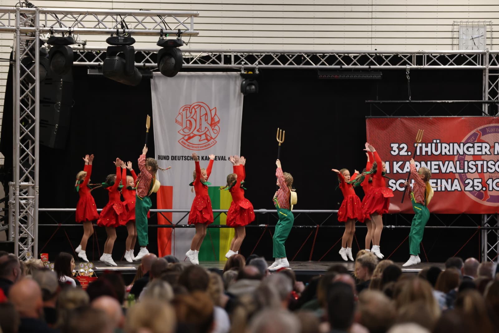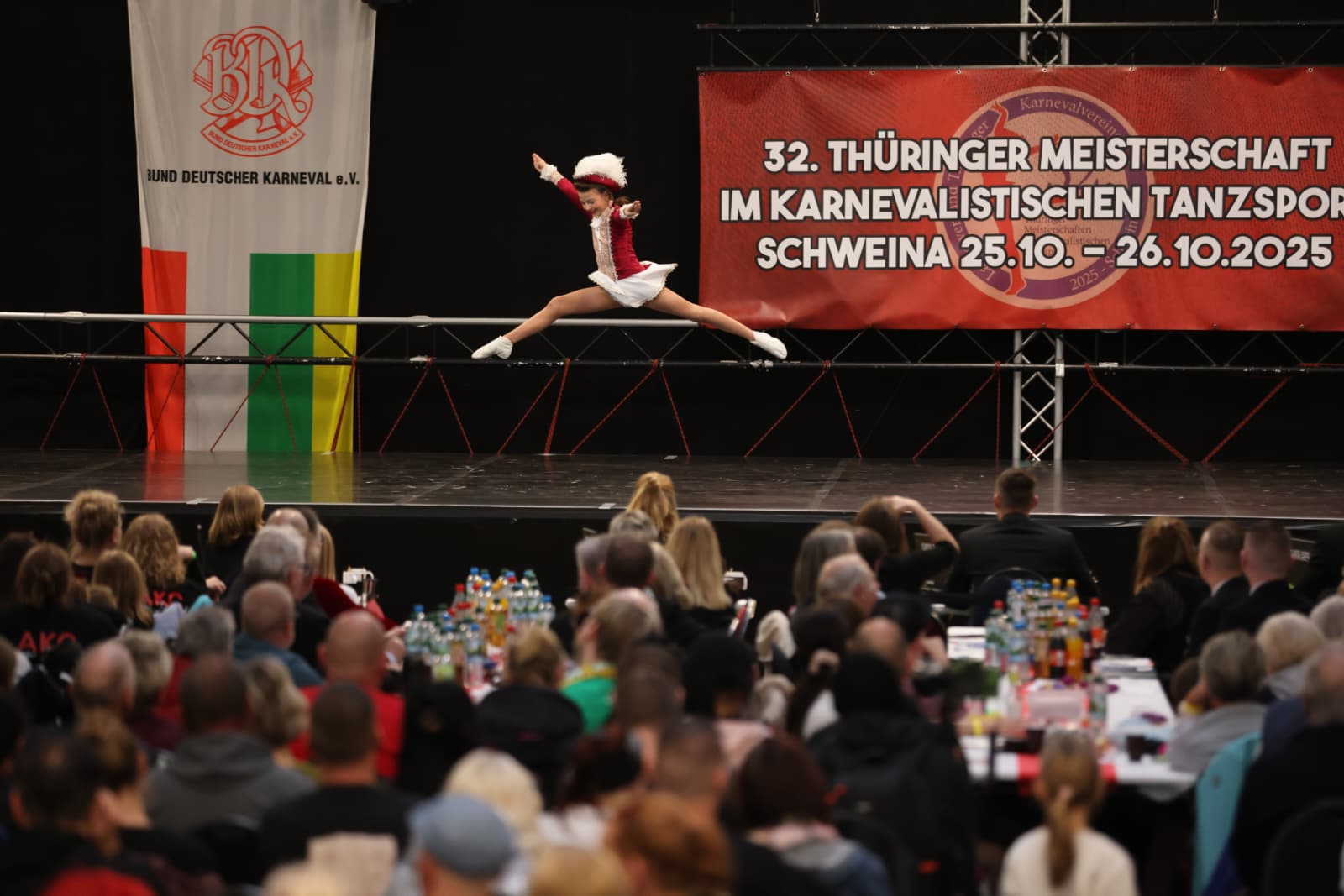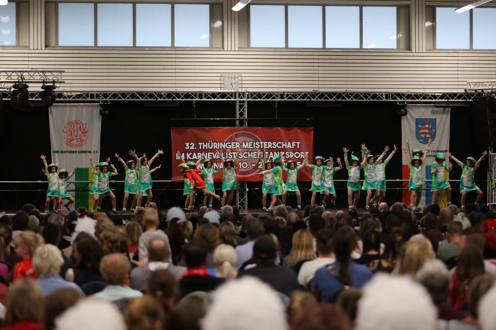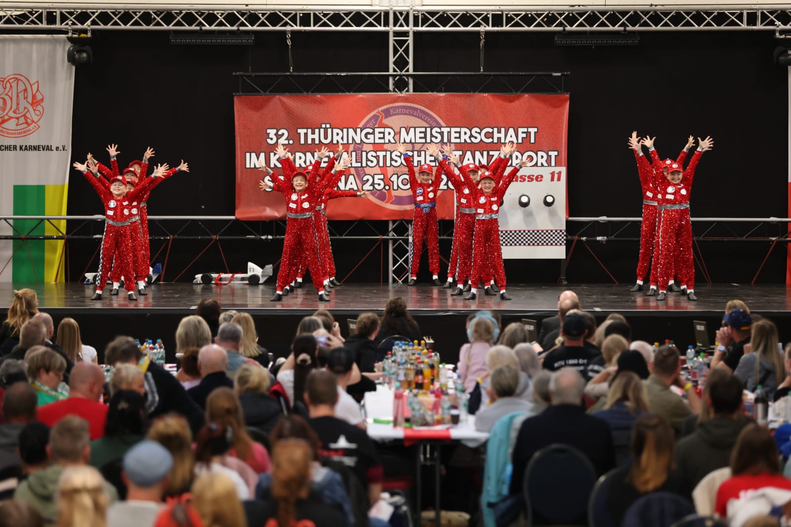 Schweina – Das vergangene Wochenende der 32. Thüringer Meisterschaften im karnevalistischen Tanzsport wird den Teilnehmenden, Zuschauenden und dem Landesverband Thüringer Karnevalvereine e.V. (LTK) sicherlich noch lange in Erinnerung bleiben. Vom 25. und 26. Oktober fanden die Meisterschaften erstmals in der Friedrich-Fröbel-Halle in Schweina statt und wurden vom Schweinaer Karneval Verein e.V. organisiert und ausgerichtet. Sie boten nicht nur sportliche Höchstleistungen, sondern auch ein einmaliges Gemeinschaftserlebnis.
