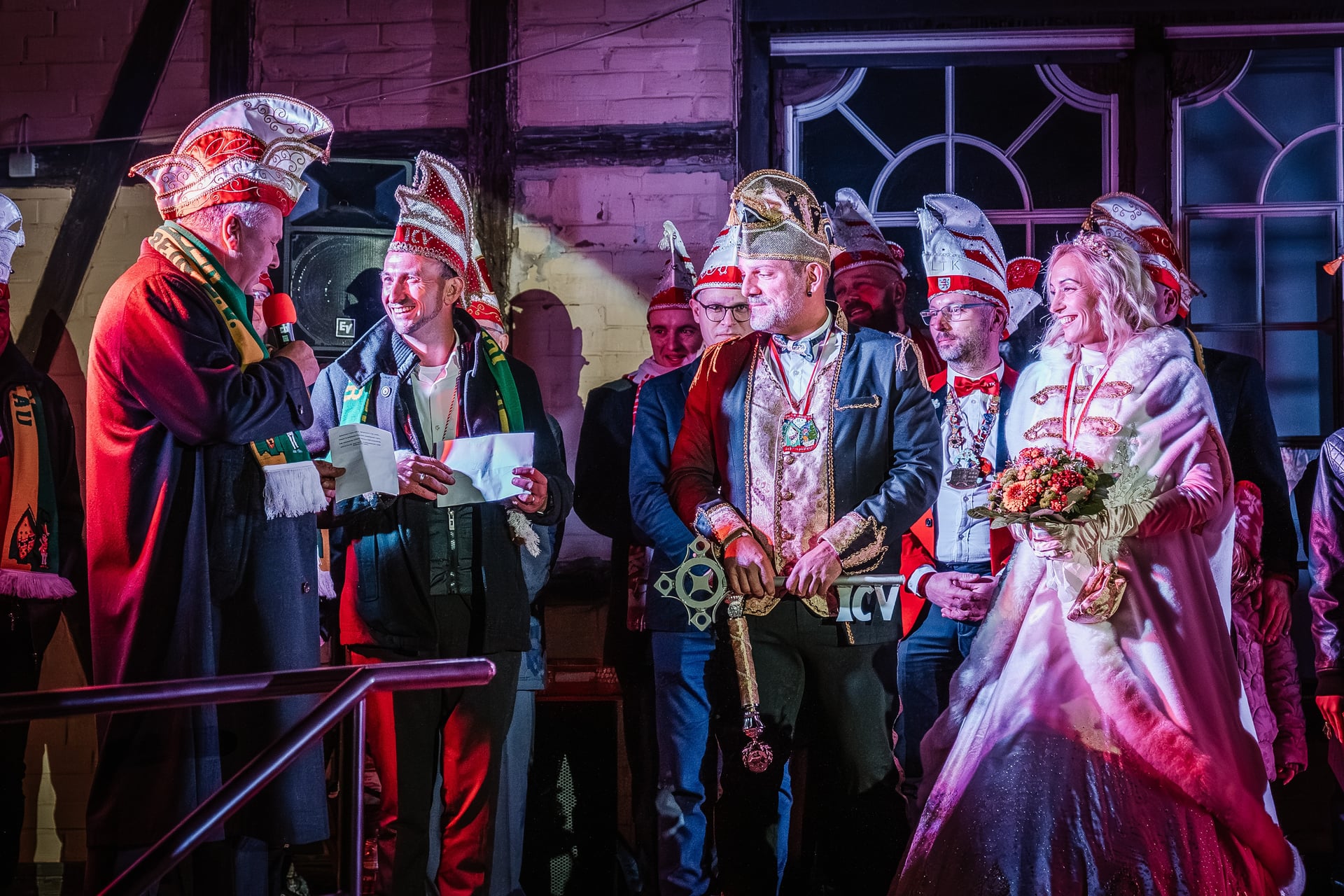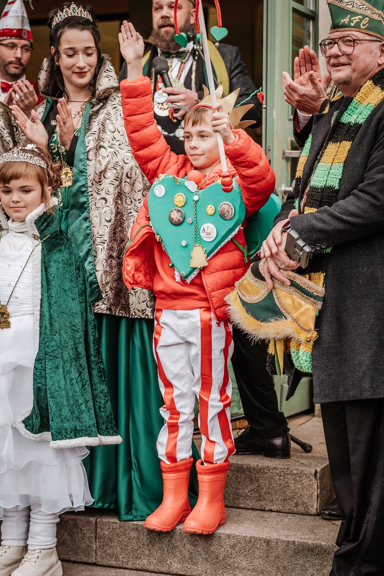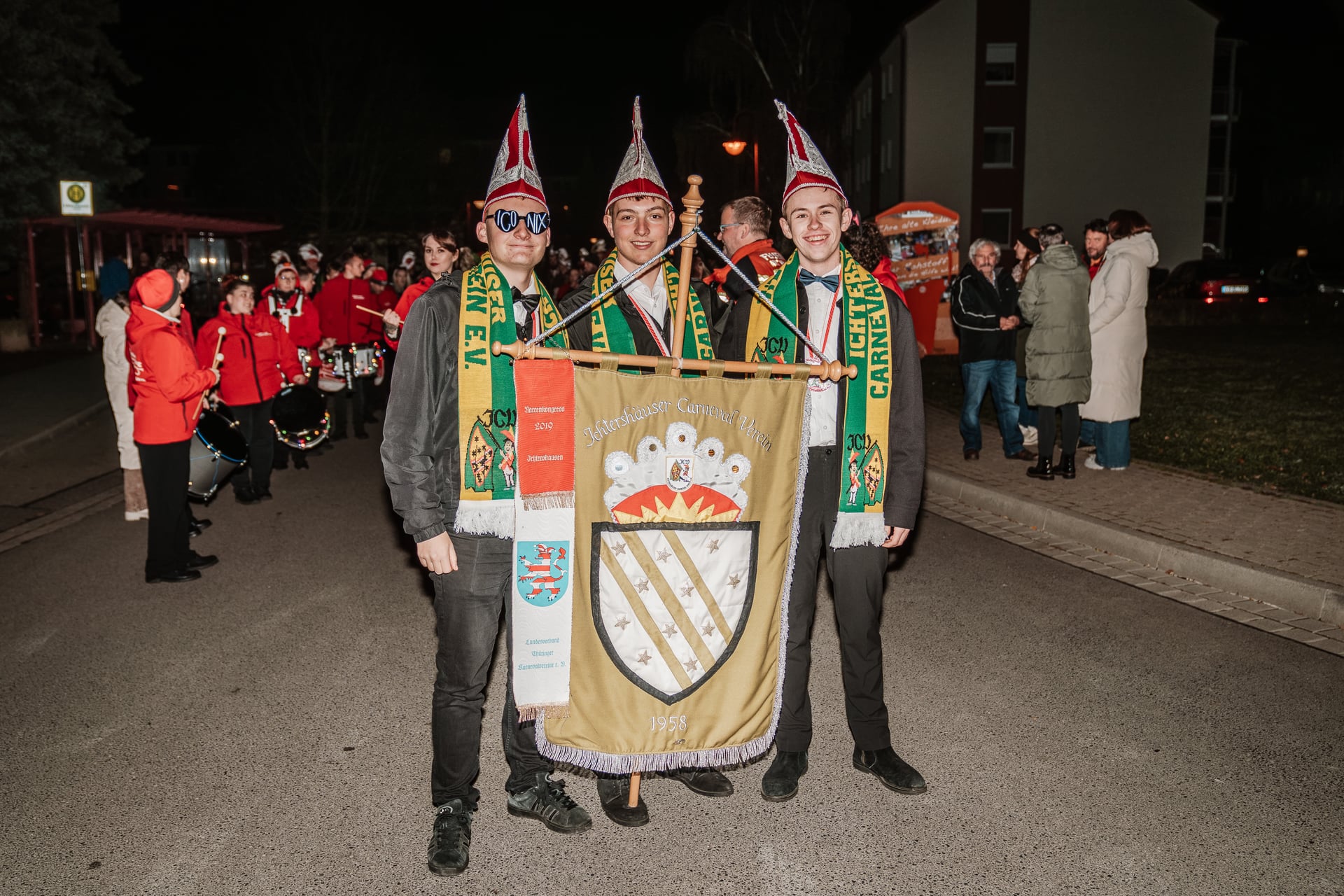 Ein Fanfarenzug führte den kleinen, aber feinen Umzug von der Schule bis zum Nadelwerk. Dort wurde das Prinzenpaar des Ichtershäuser Carnevalvereins feierlich proklamiert und intronisiert.