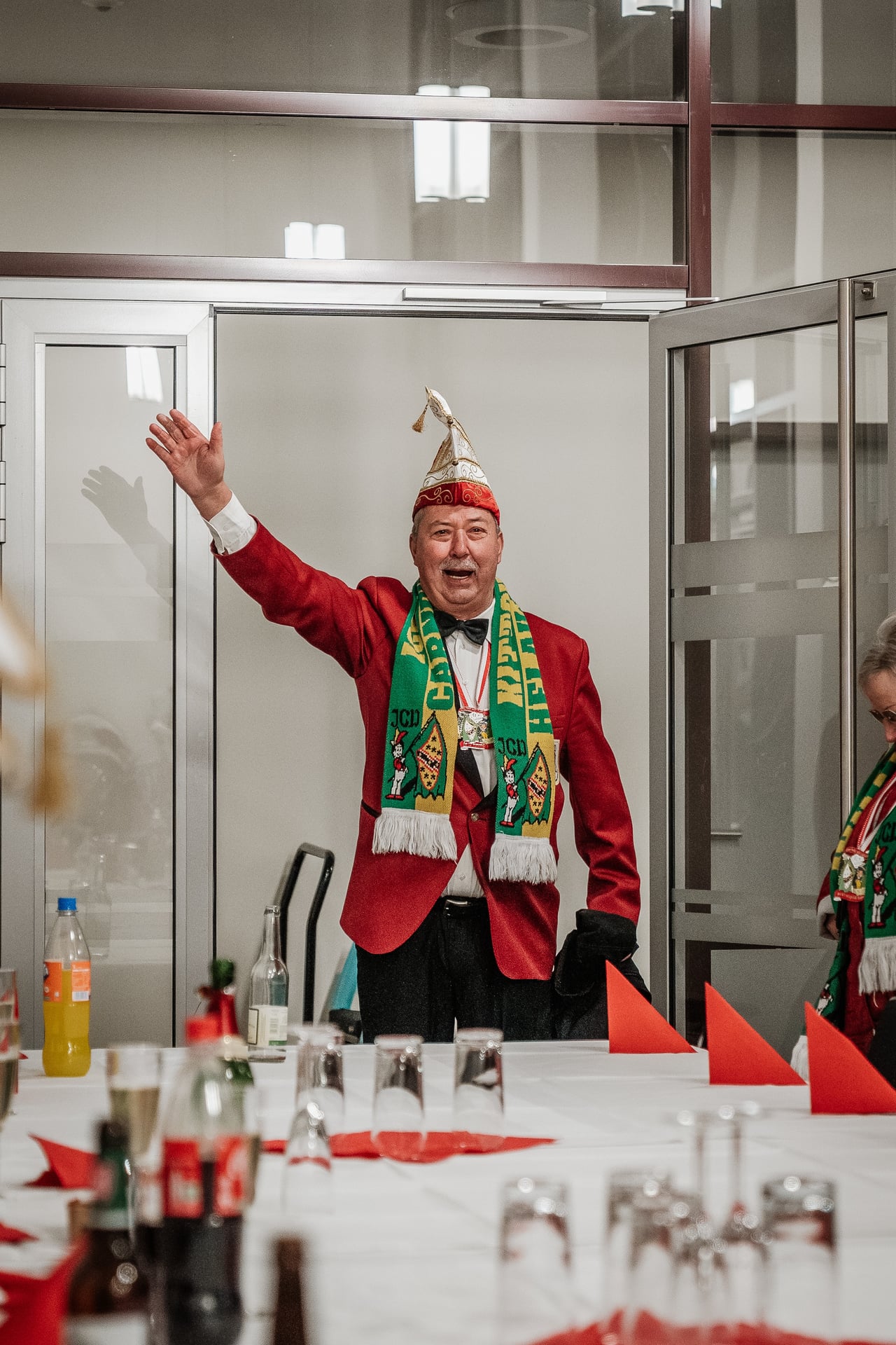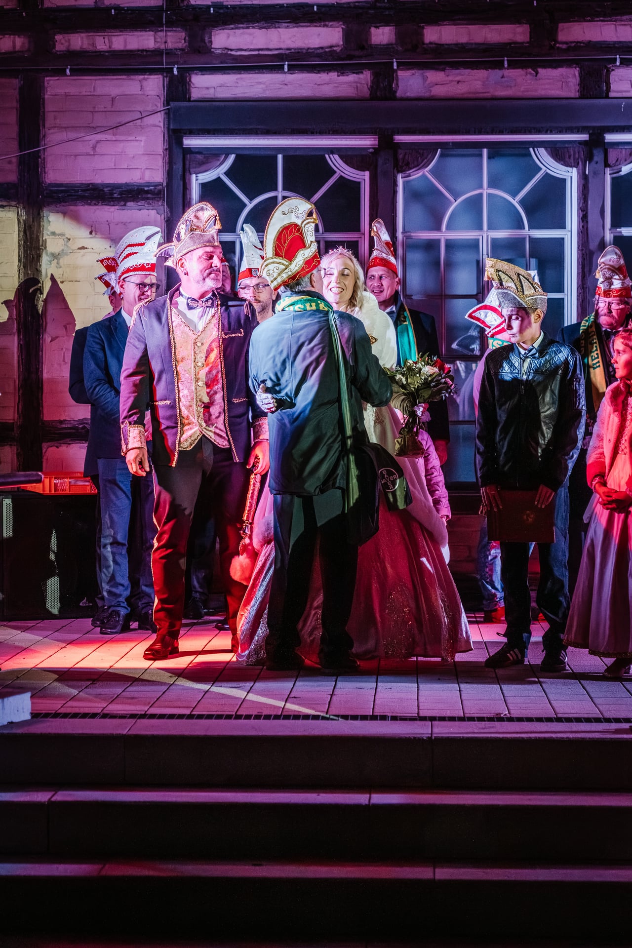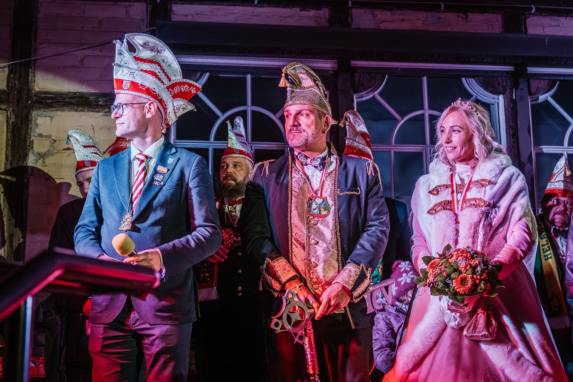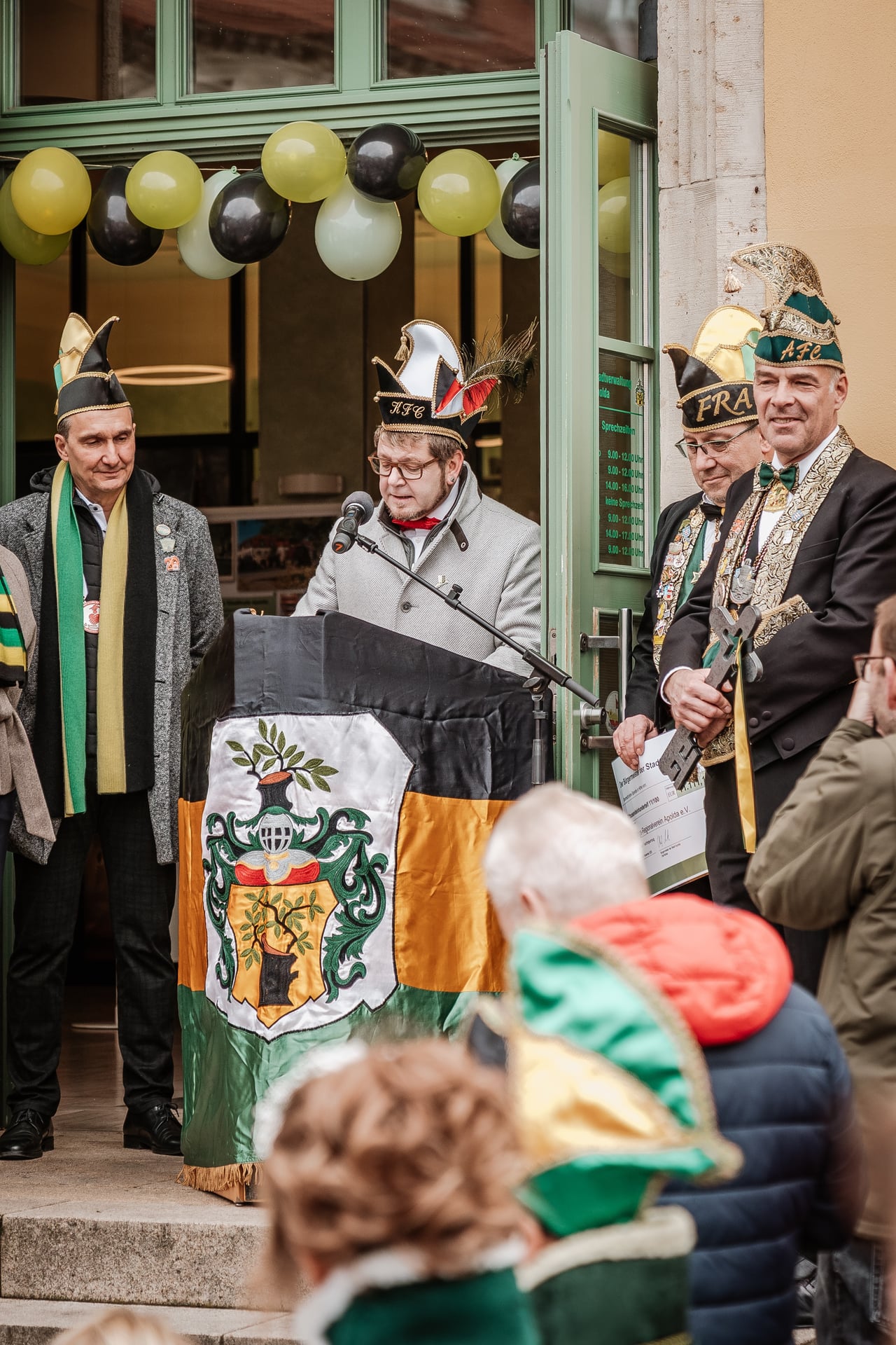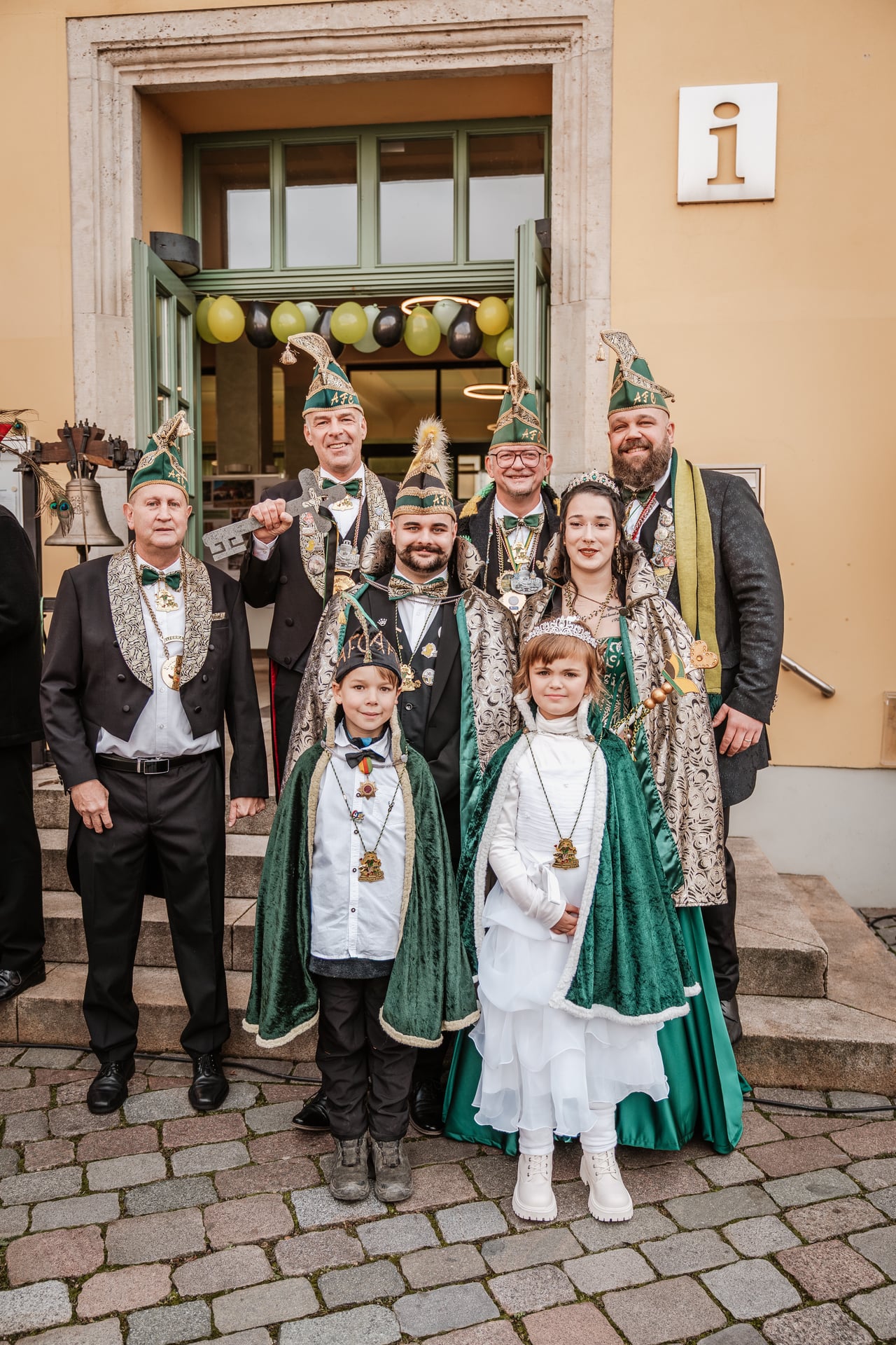 Nach der Schlüsselübergabe – und einem sensationellen „Umzugszuschlag“ von 11.111,11 Euro durch den Bürgermeister – ging es weiter ins Hotel am Schloss. Dort bewirteten Sponsoren und Unterstützer die närrische Delegation mit großem Herz und Apoldaer Bier.