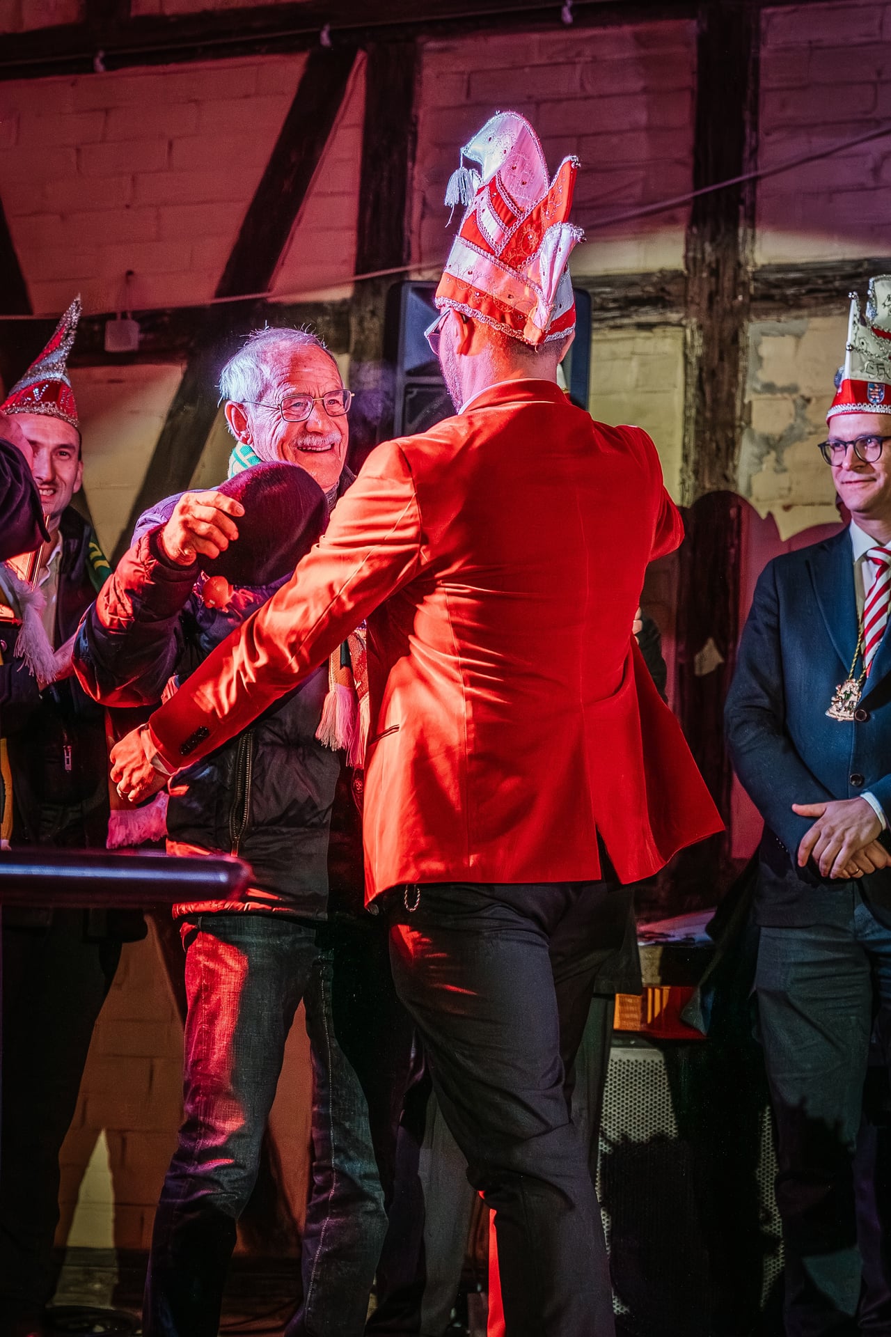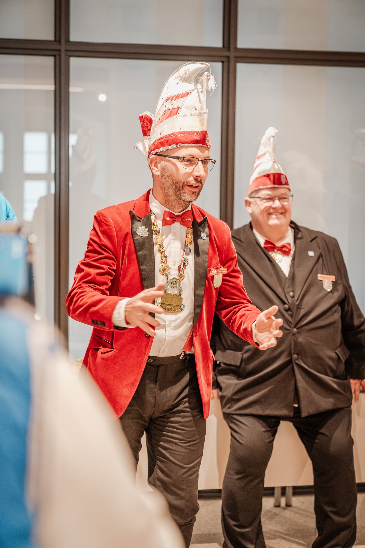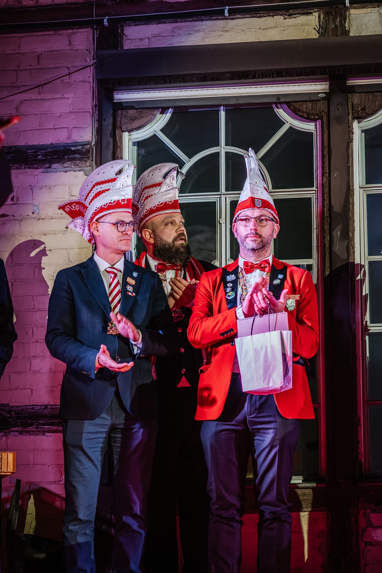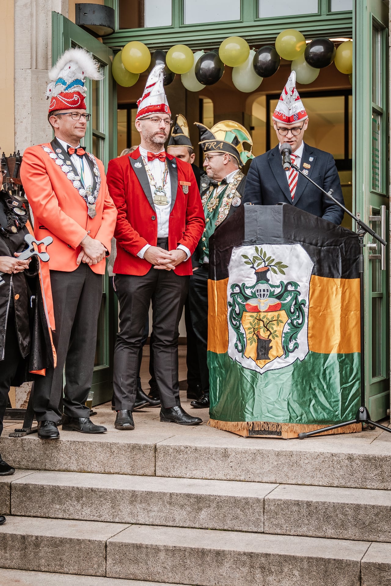Nach der Schlüsselübergabe – und einem sensationellen „Umzugszuschlag“ von 11.111,11 Euro durch den Bürgermeister – ging es weiter ins Hotel am Schloss. Dort bewirteten Sponsoren und Unterstützer die närrische Delegation mit großem Herz und Apoldaer Bier.