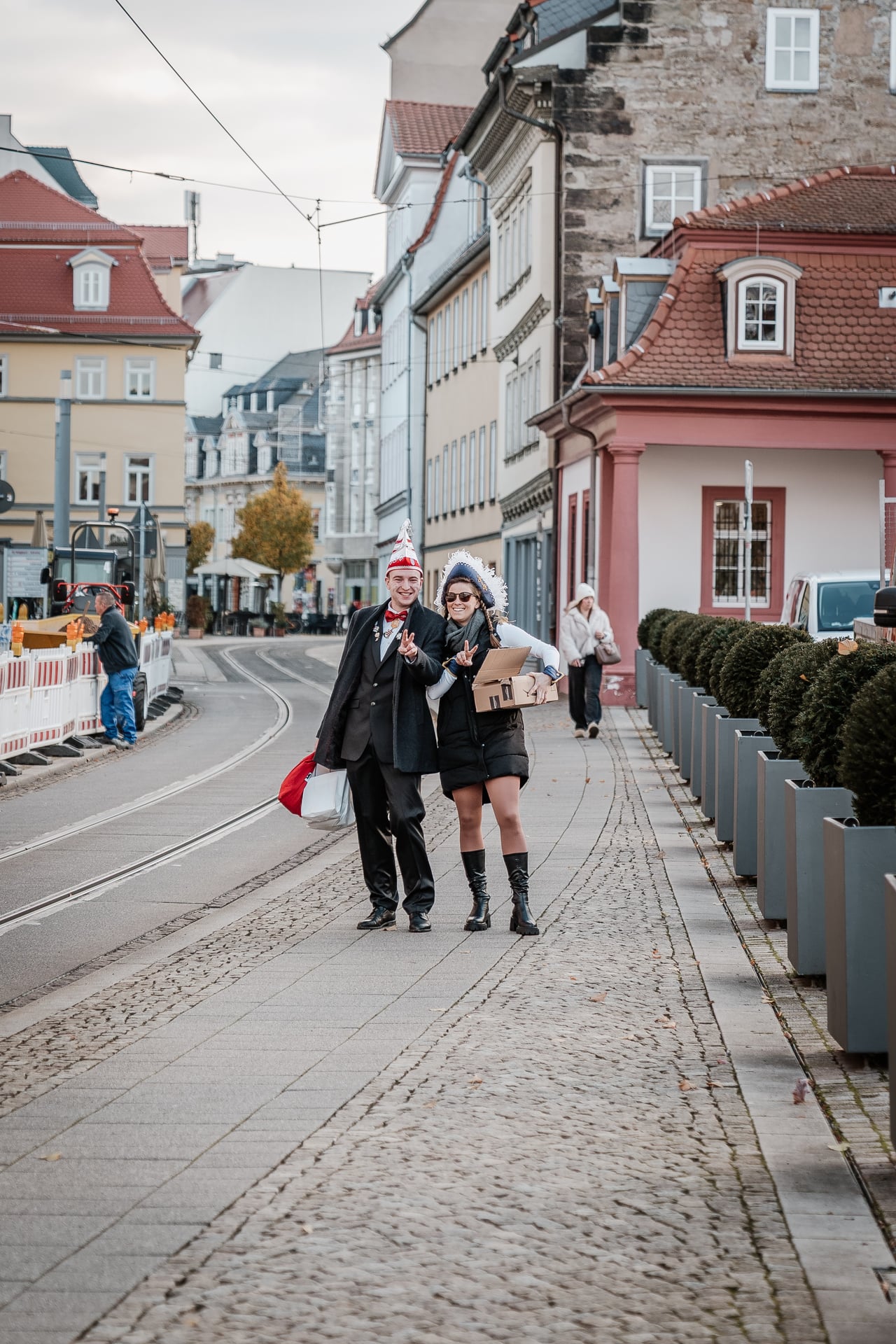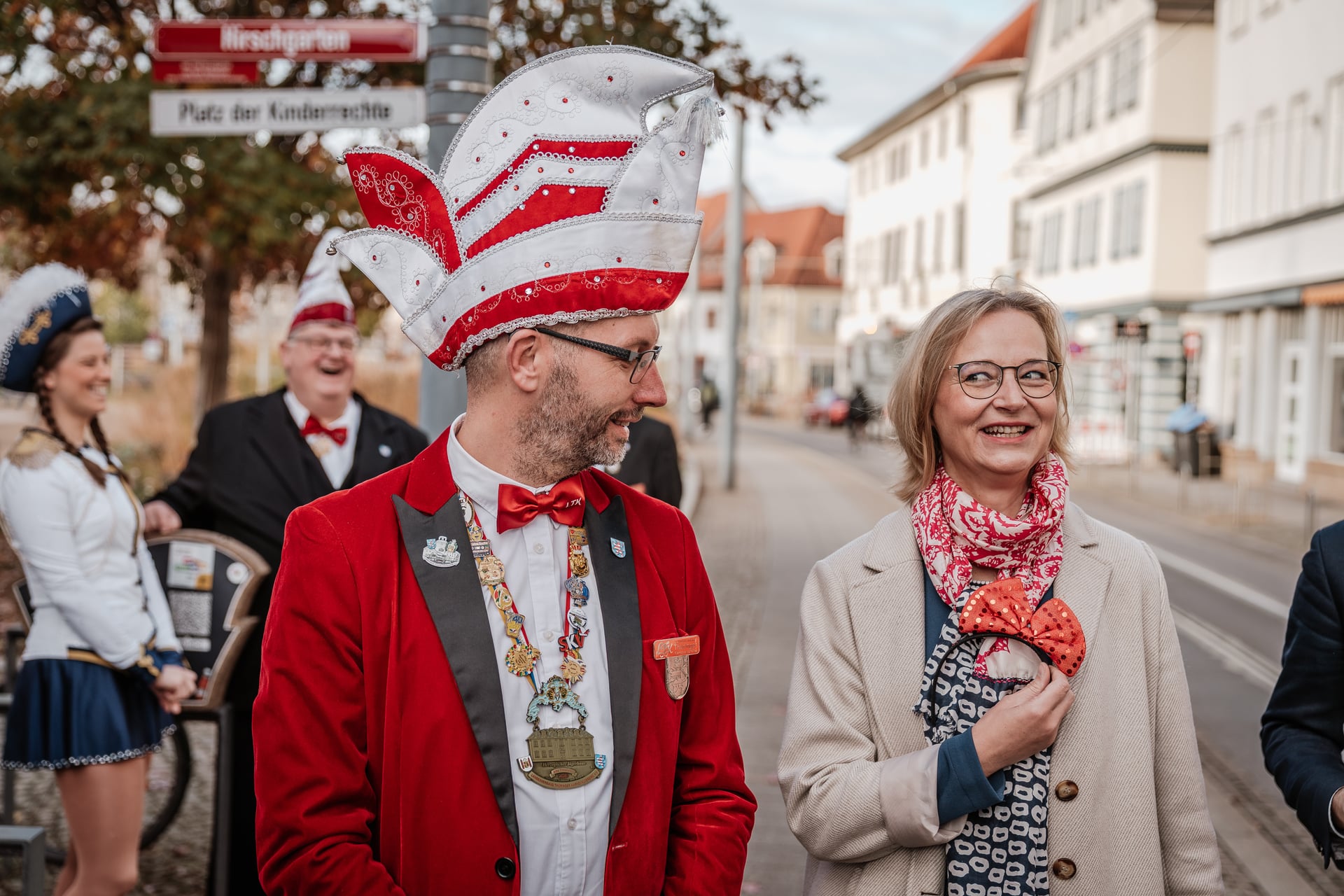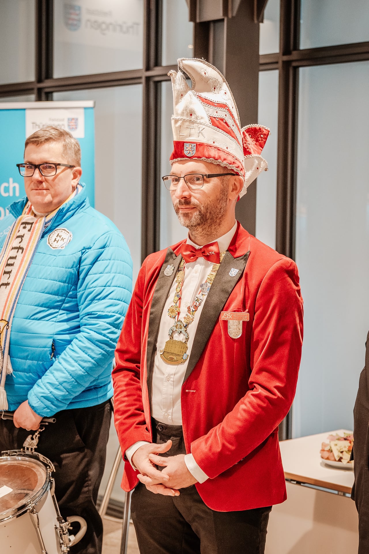 Wenn Punkt 9:11 Uhr der Kabinettssaal der Thüringer Staatskanzlei bebt, dann ist klar: Die fünfte Jahreszeit beginnt. Und in diesem Jahr war es ein besonderer Moment. Zum ersten Mal begleiteten der Thüringer Ehrenamtsbeauftragte der Staatskanzlei, Guntram Wothly, und der Landesverband Thüringer Karnevalvereine e.V. gemeinsam die 11.11.-Tour durch Thüringen.