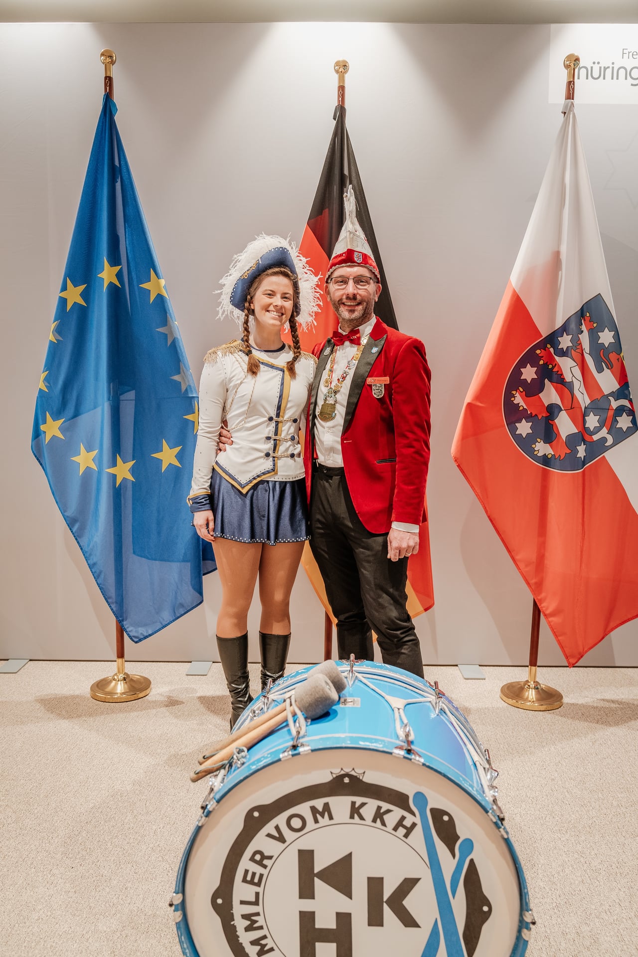 Der Besuch in Ichtershausen bot dem LTK-Präsidenten Christoph Matthes außerdem ein Herzensanliegen: ein öffentliches Dankeschön an Landesjugendkoordinatorin Carolin Brand, die dort ihre karnevalistische Heimat hat.