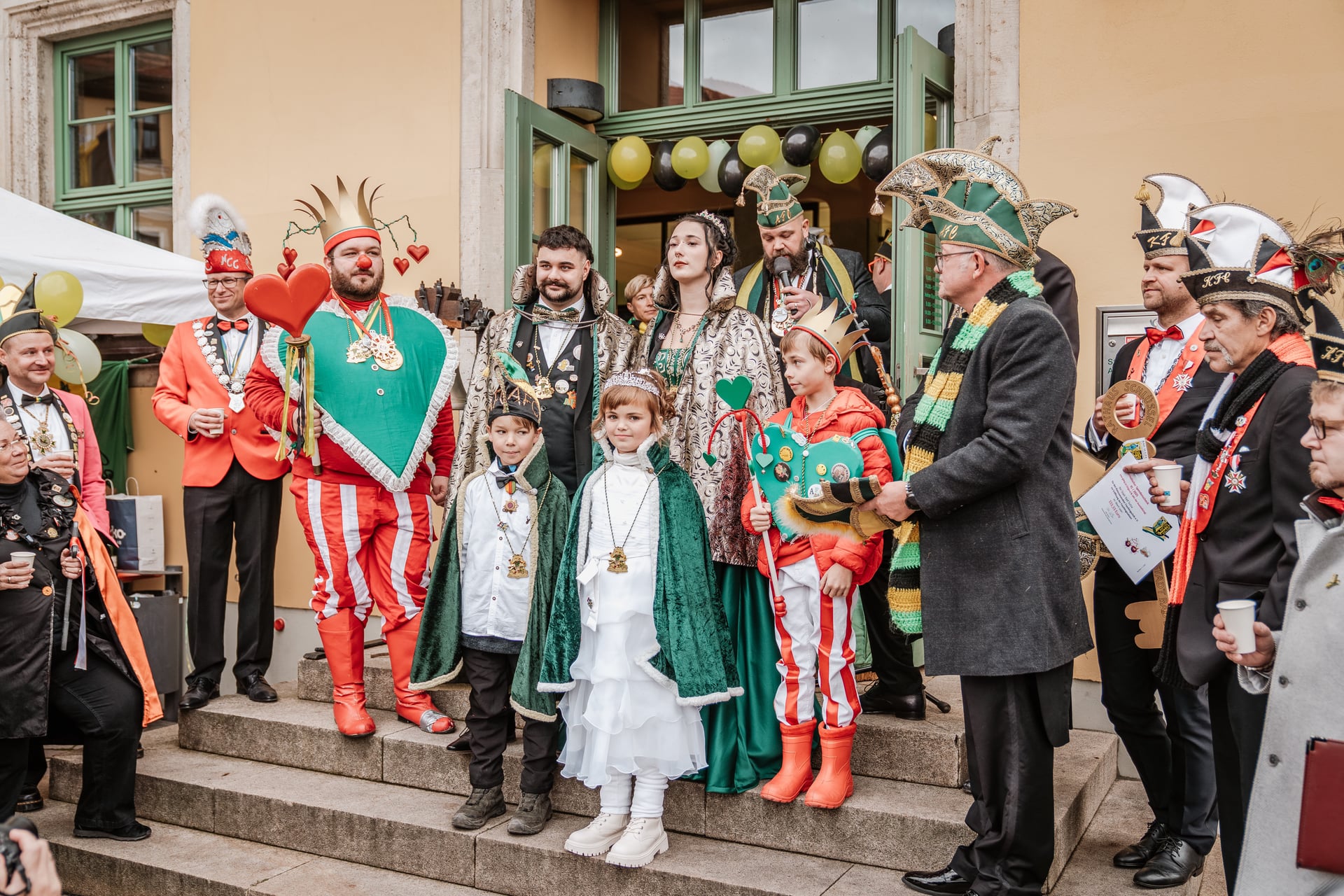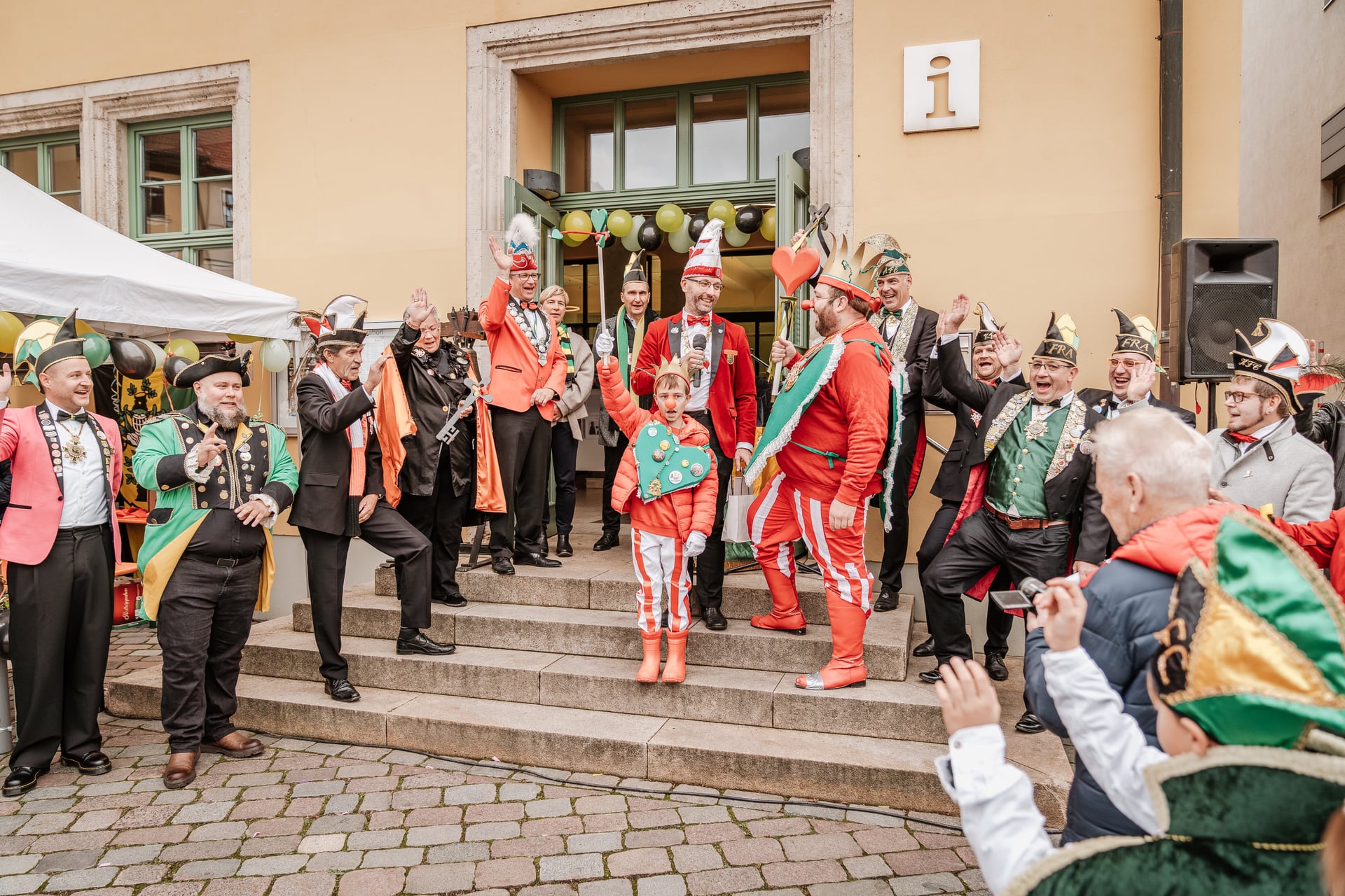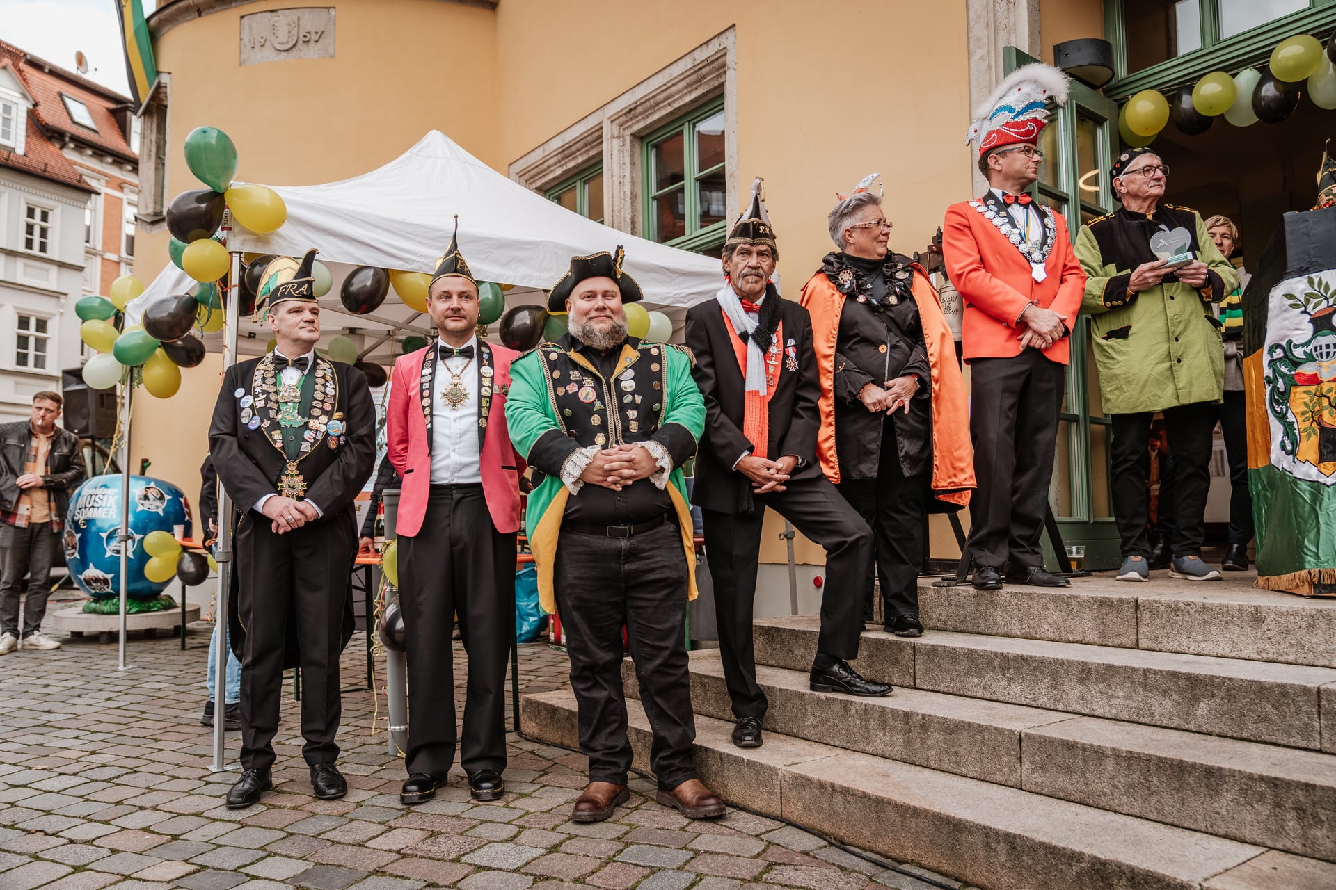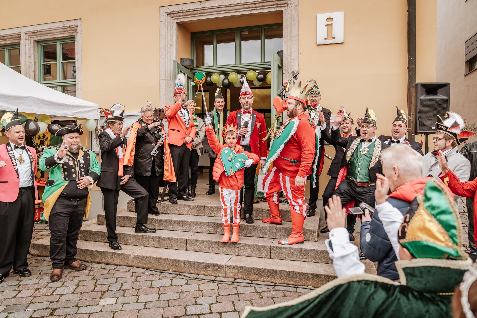 Dort hatten bereits alle Apoldaer Karnevalsvereine den Marktplatz eingenommen – und warteten auf die symbolische Schlüsselübergabe im Rathaus.