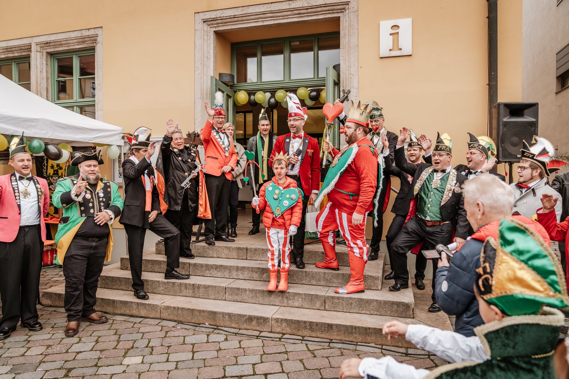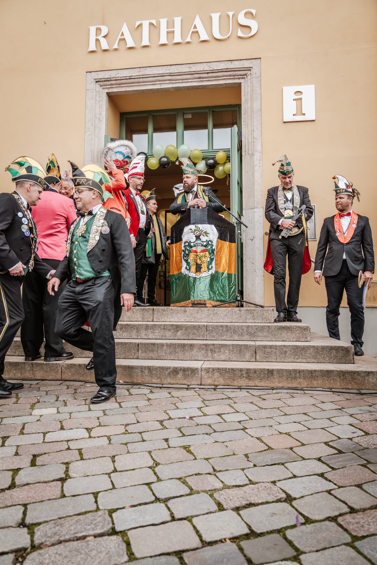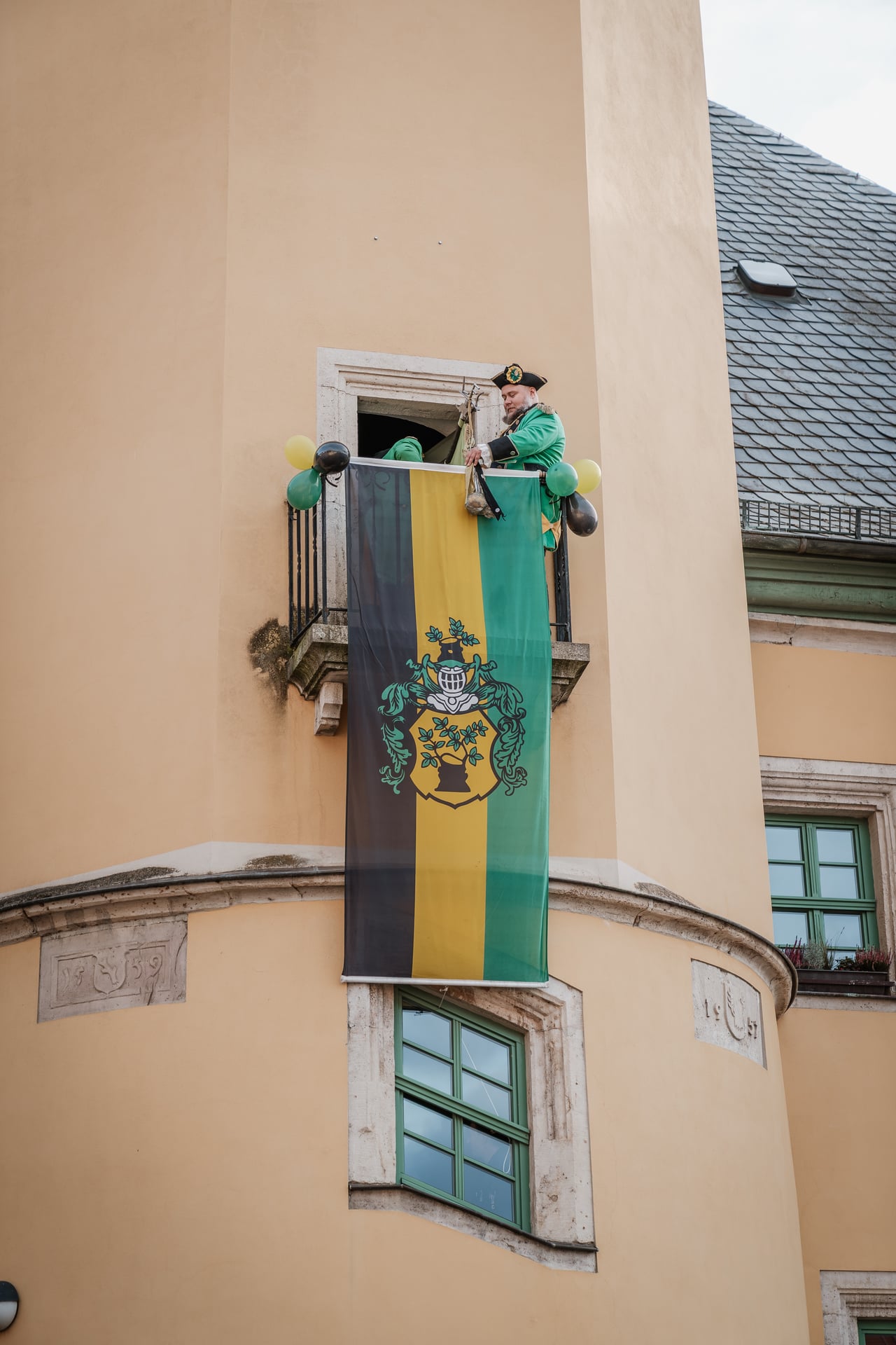 Dort hatten bereits alle Apoldaer Karnevalsvereine den Marktplatz eingenommen – und warteten auf die symbolische Schlüsselübergabe im Rathaus.
