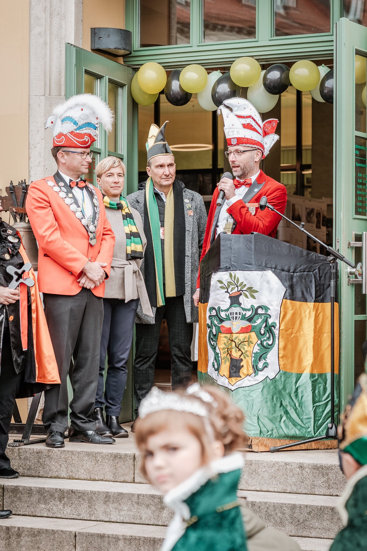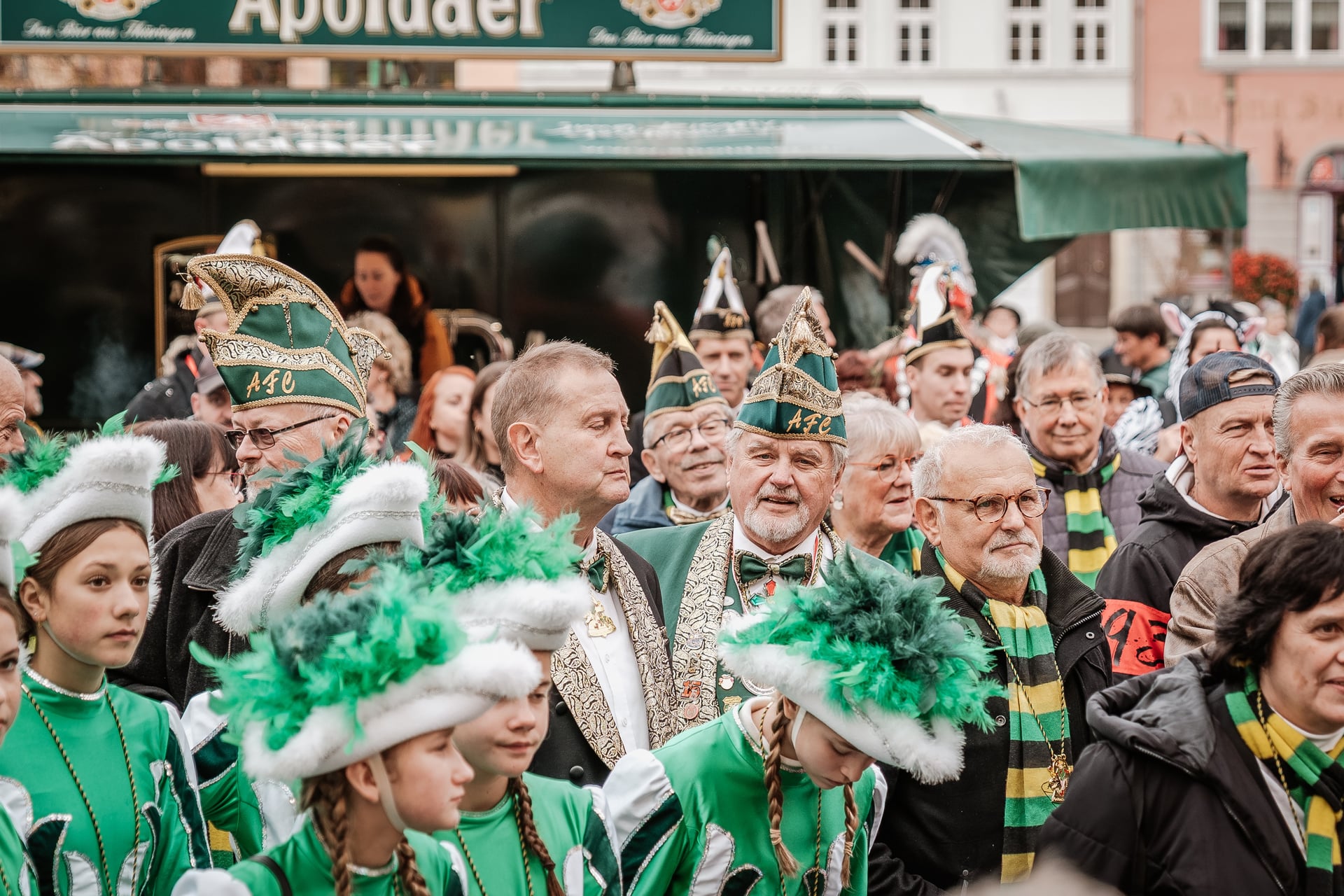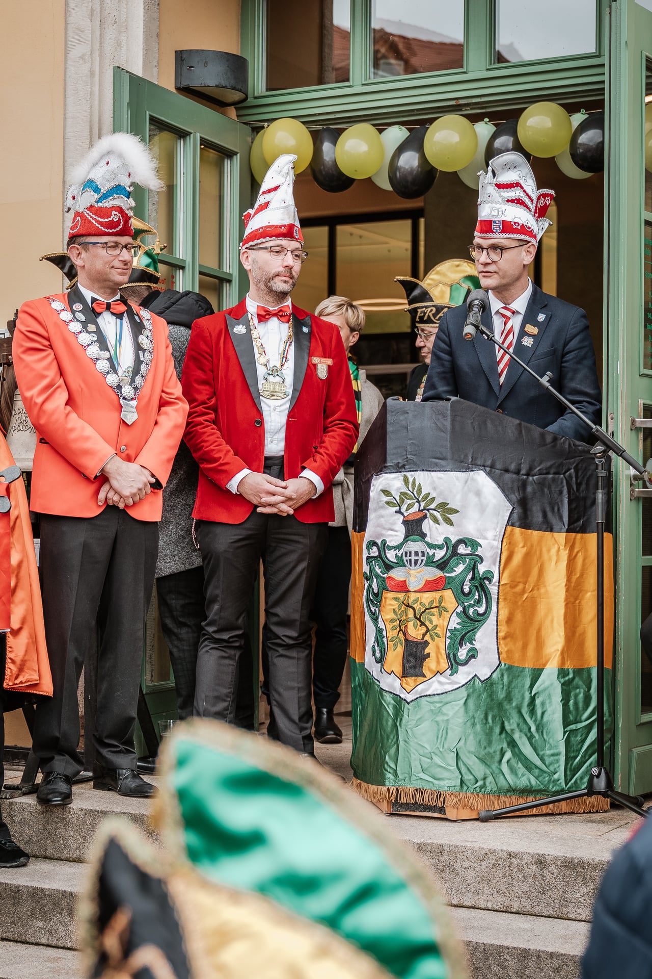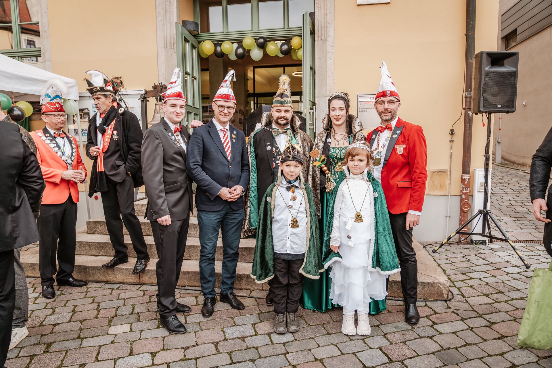 Dort hatten bereits alle Apoldaer Karnevalsvereine den Marktplatz eingenommen – und warteten auf die symbolische Schlüsselübergabe im Rathaus.