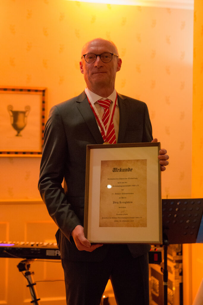 Im feierlichen Rahmen wurde am 22. November 2025 im Hotel am Schlosspark Gotha zum elften Mal der Gothaer Elefantenorden verliehen. Die Auszeichnung, die von der Gothaer Karnevalsgemeinschaft 1969 e.V. seit 1995 nur alle drei Jahre vergeben wird, würdigt Persönlichkeiten aus Wirtschaft, Politik, Kunst, Sport oder Wissenschaft, die sich durch besondere Arbeitsamkeit, Ausdauer, große Wirksamkeit sowie Humor, sichtbar in der Öffentlichkeit, ausgezeichnet haben.