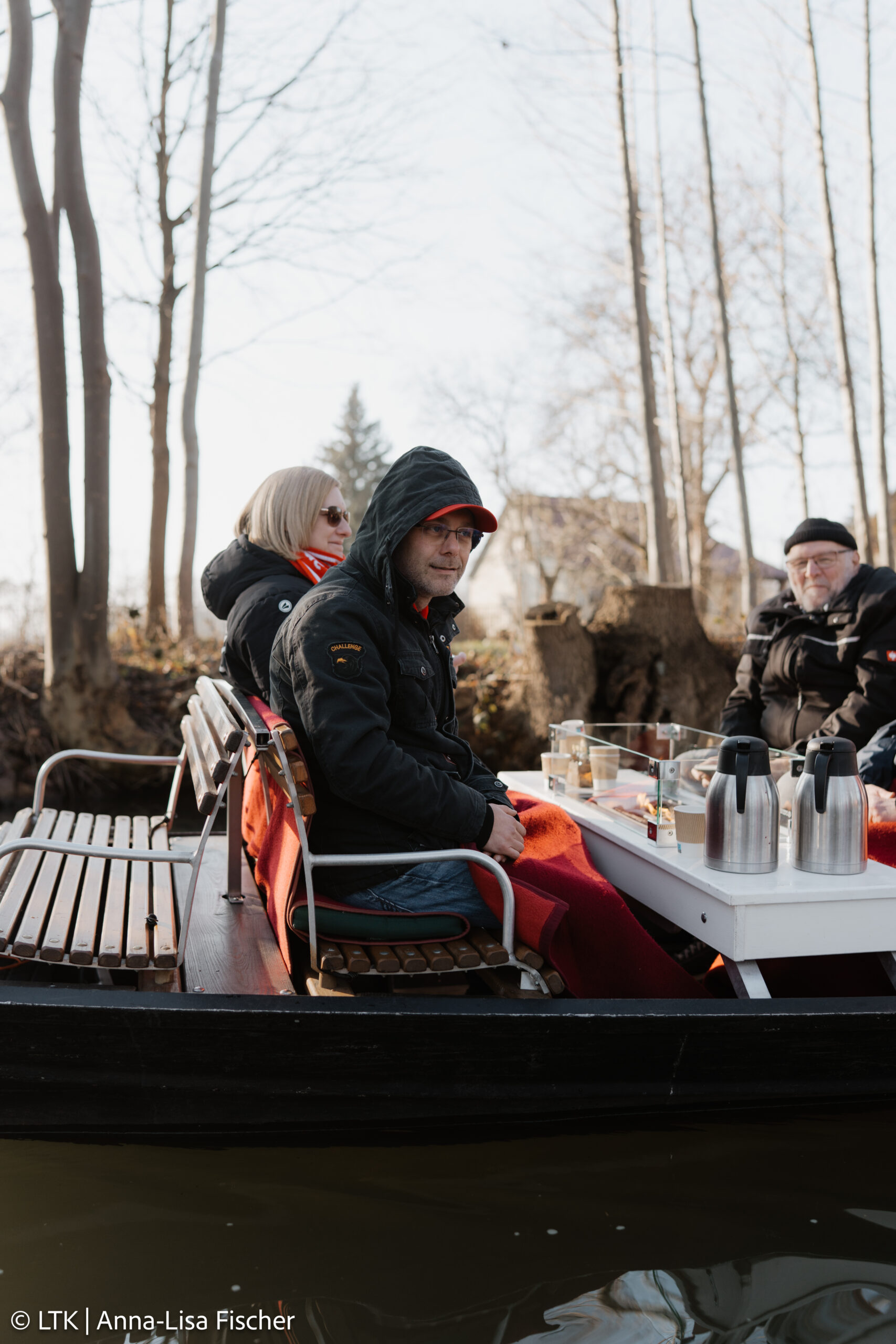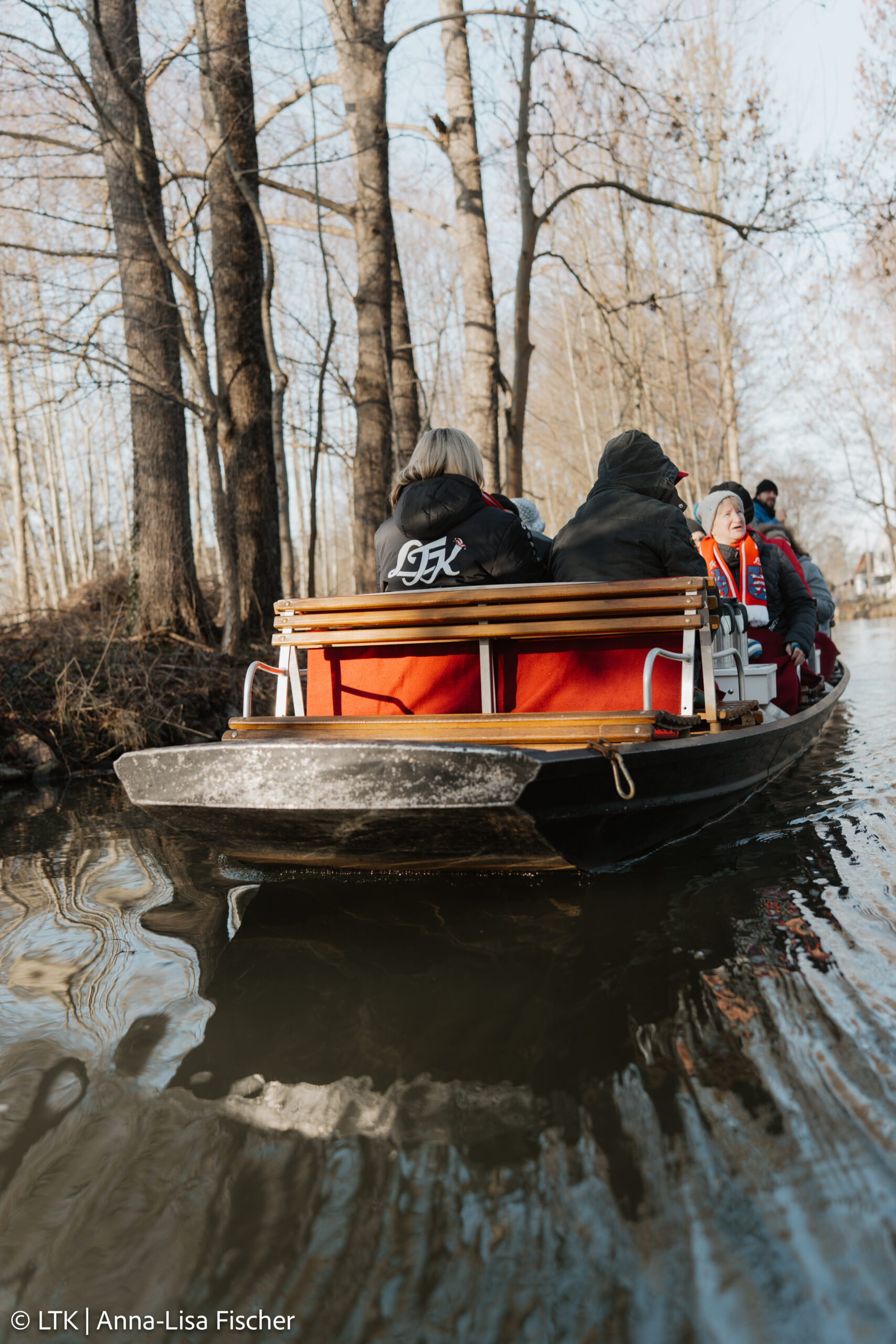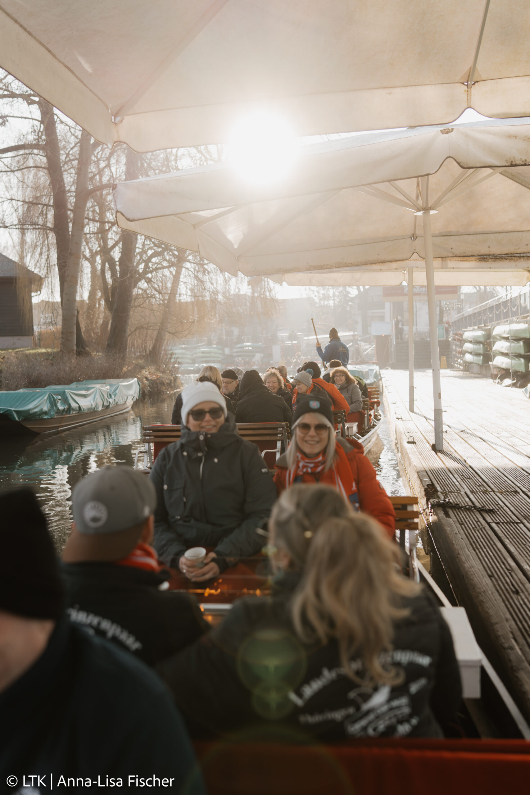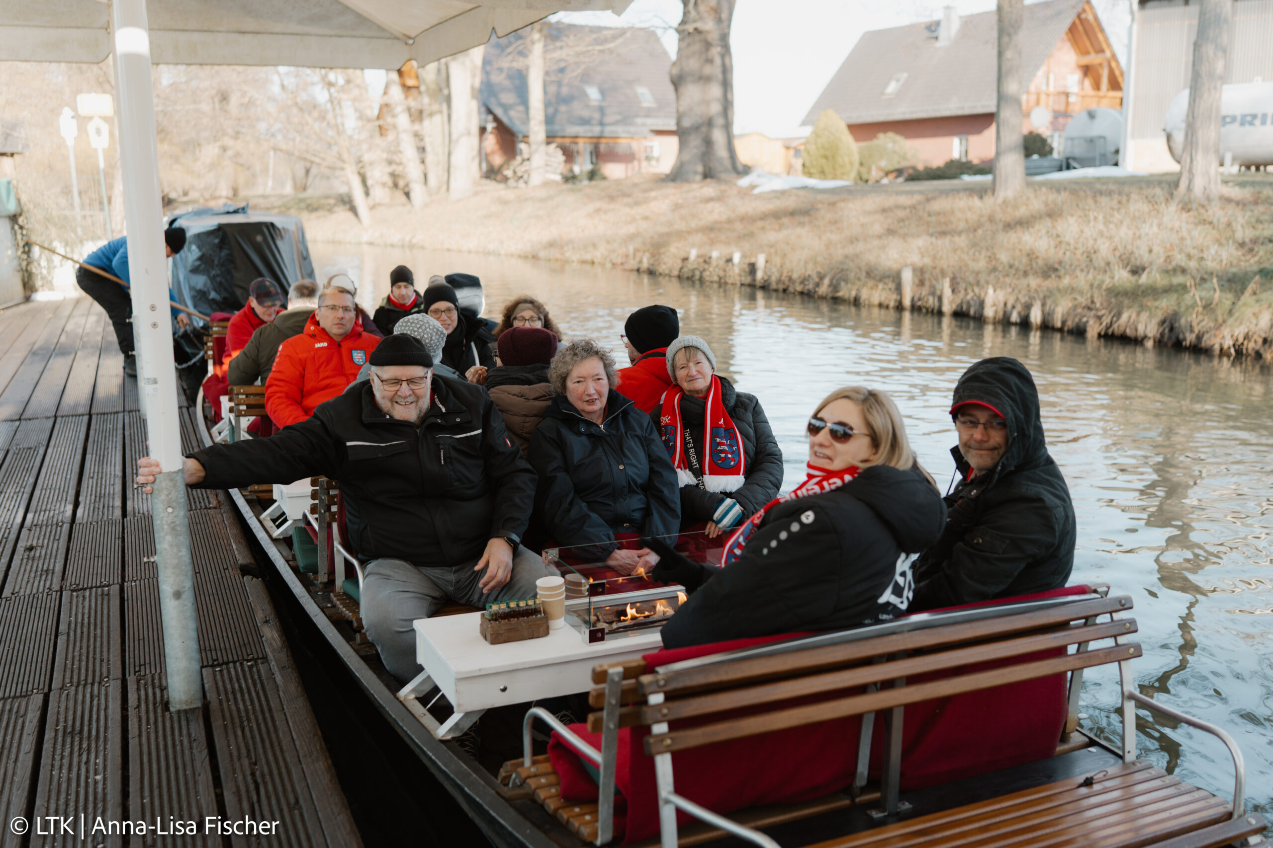 Nach dem Frühstück und dem Checkout ging es mit dem Bus Richtung Spreewald. Trotz frostiger Temperaturen hatten wir Glück: Die Kaminkähne konnten fahren!