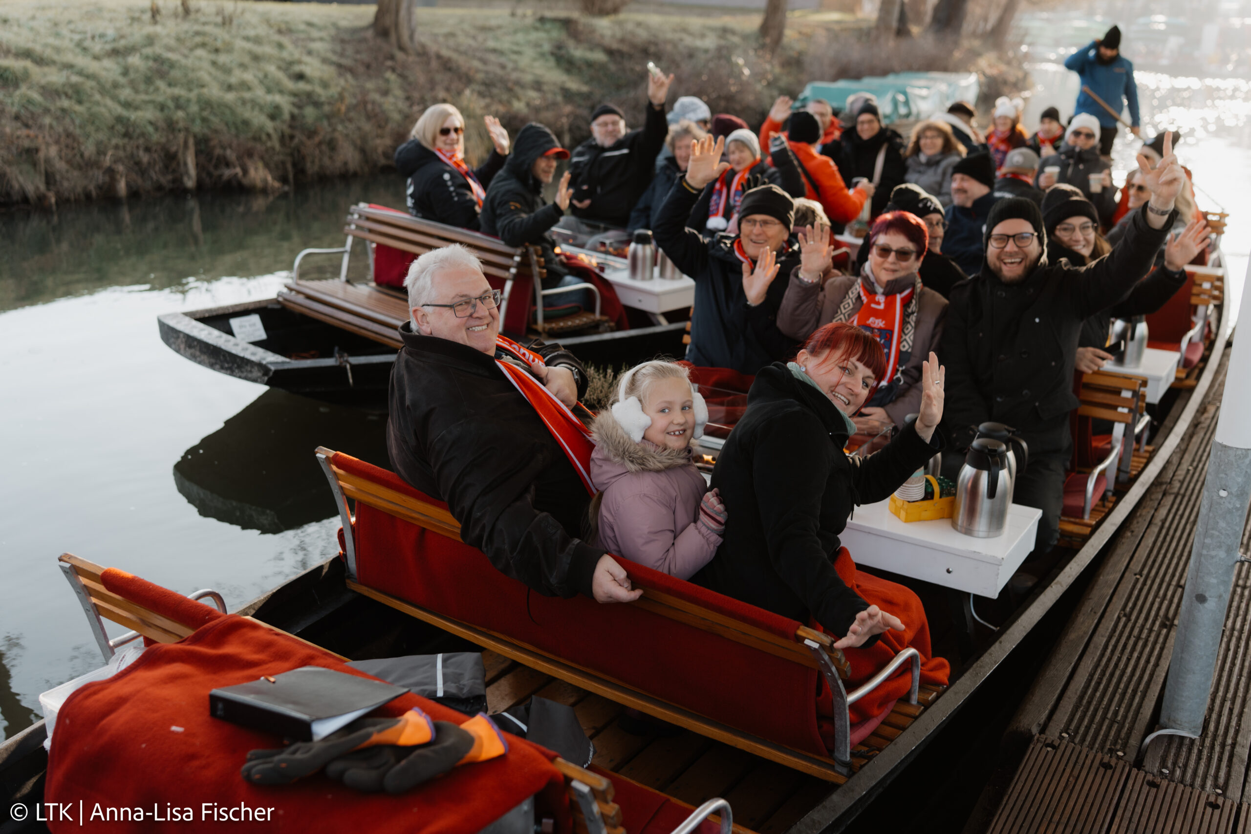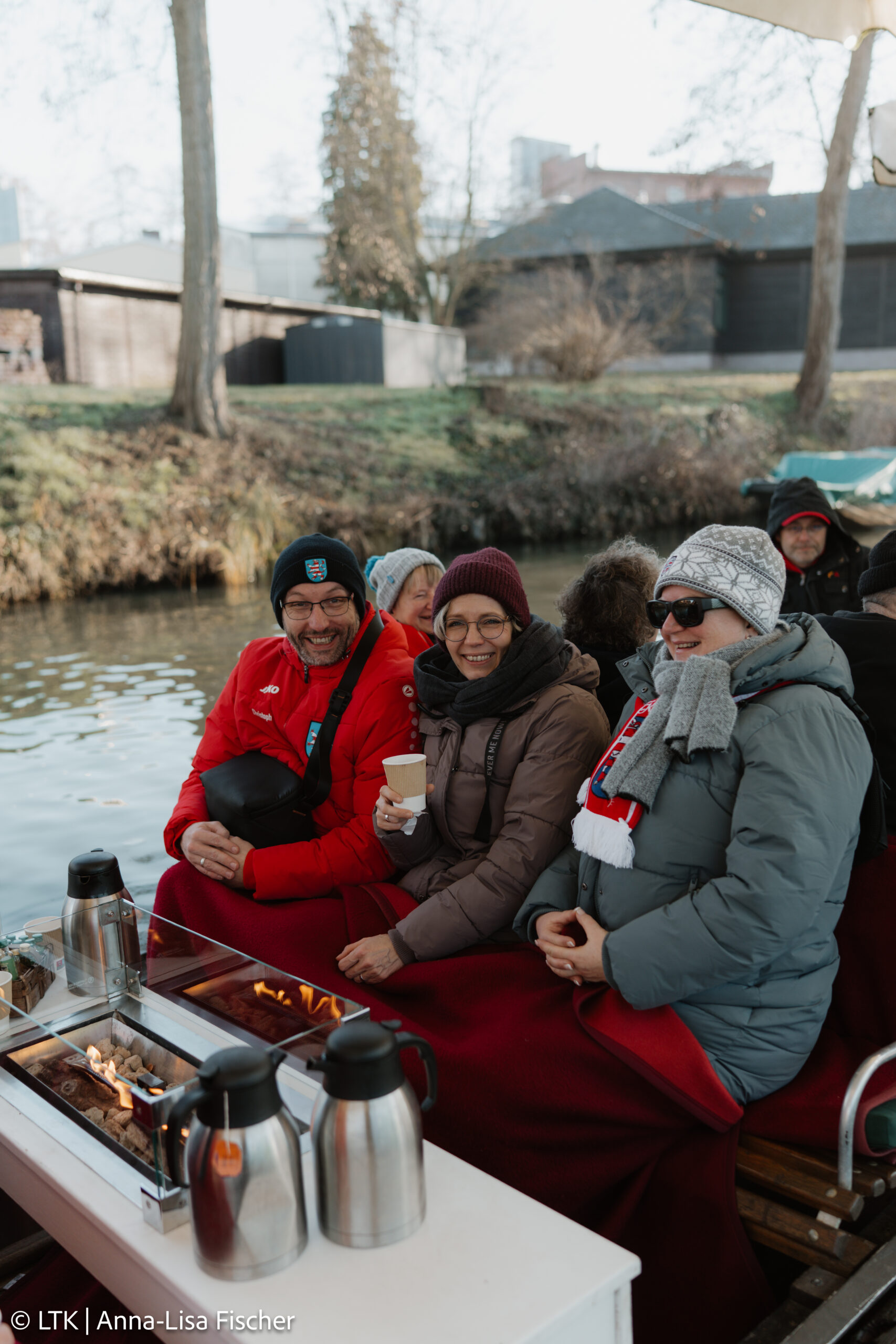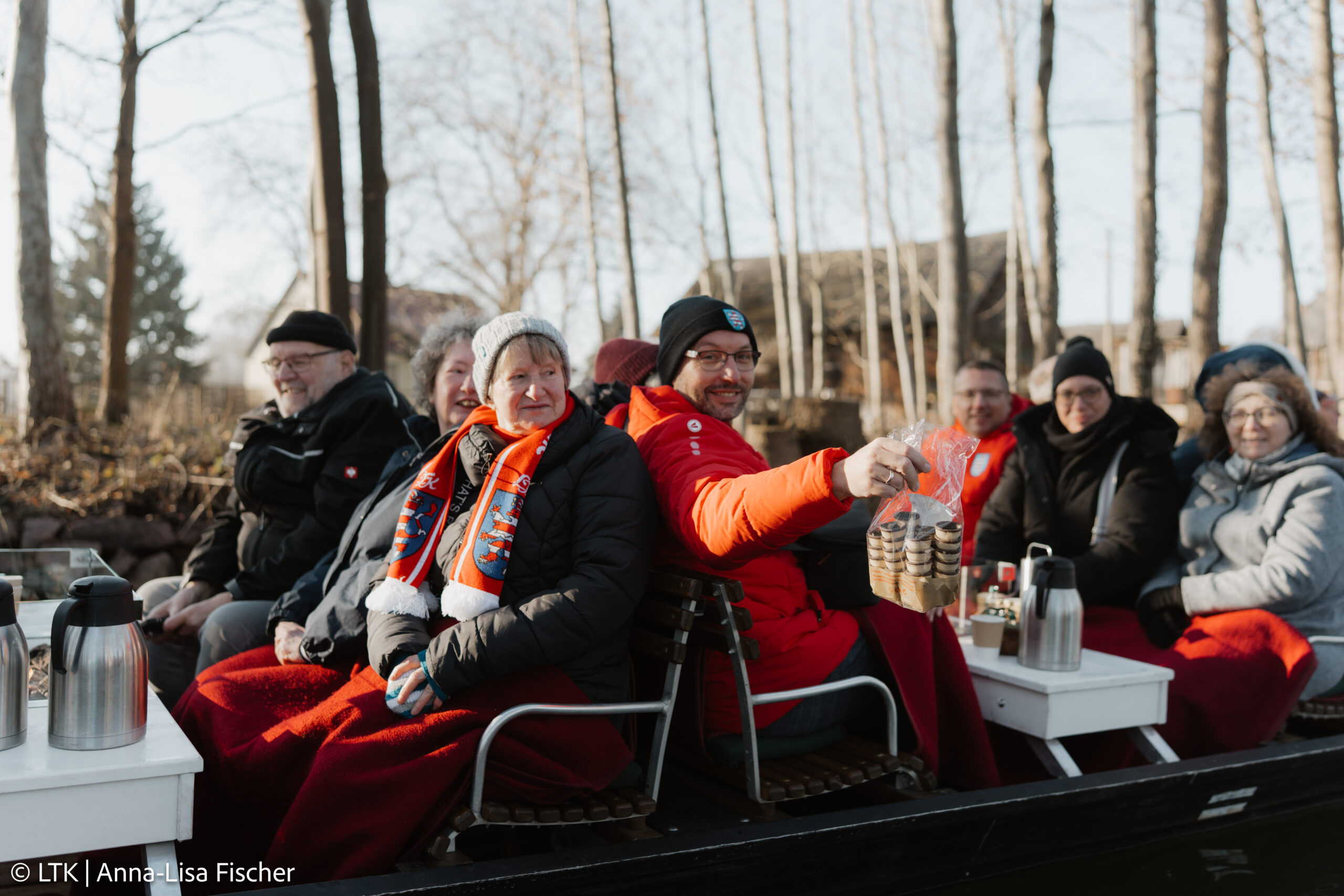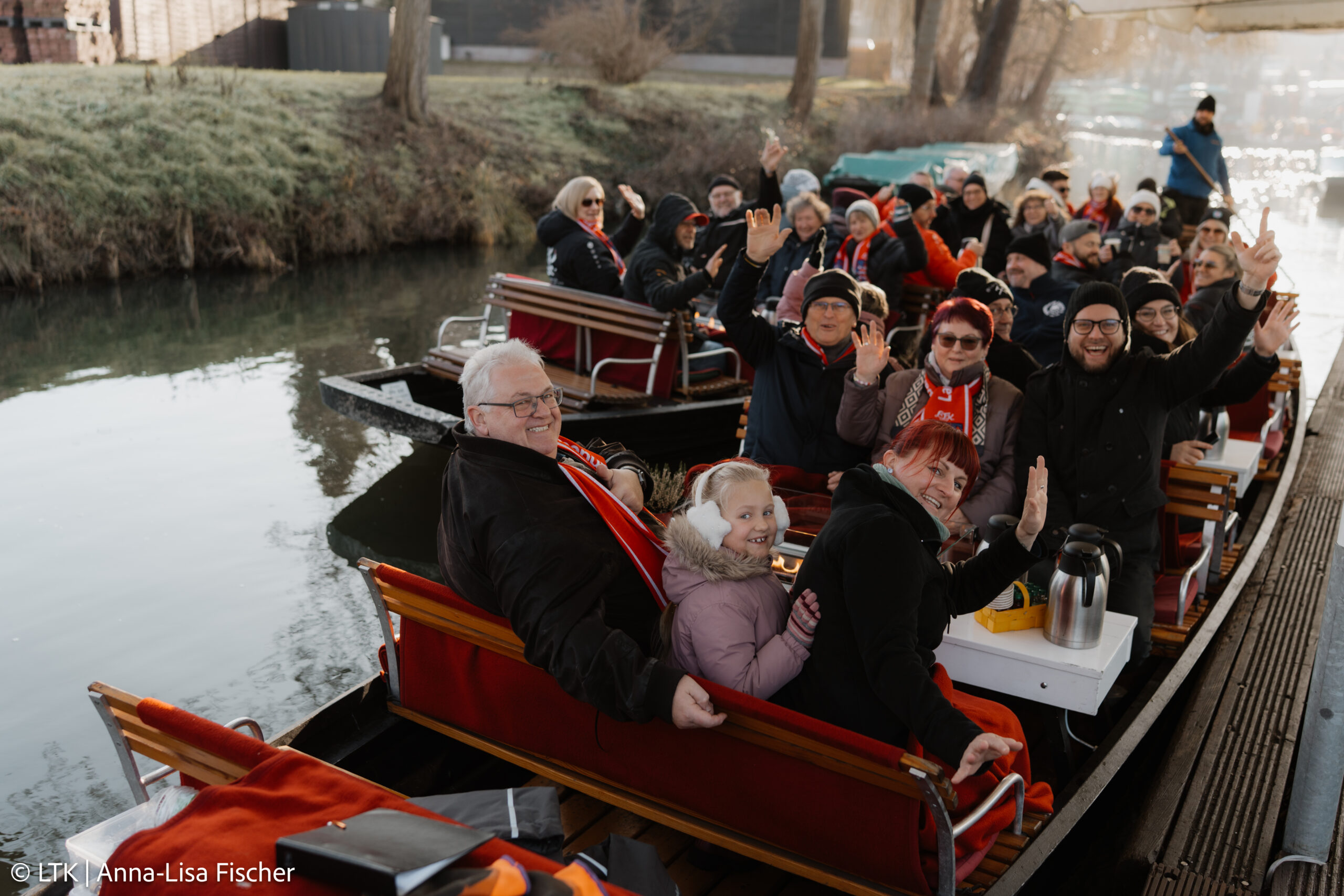 Nach dem Frühstück und dem Checkout ging es mit dem Bus Richtung Spreewald. Trotz frostiger Temperaturen hatten wir Glück: Die Kaminkähne konnten fahren!
