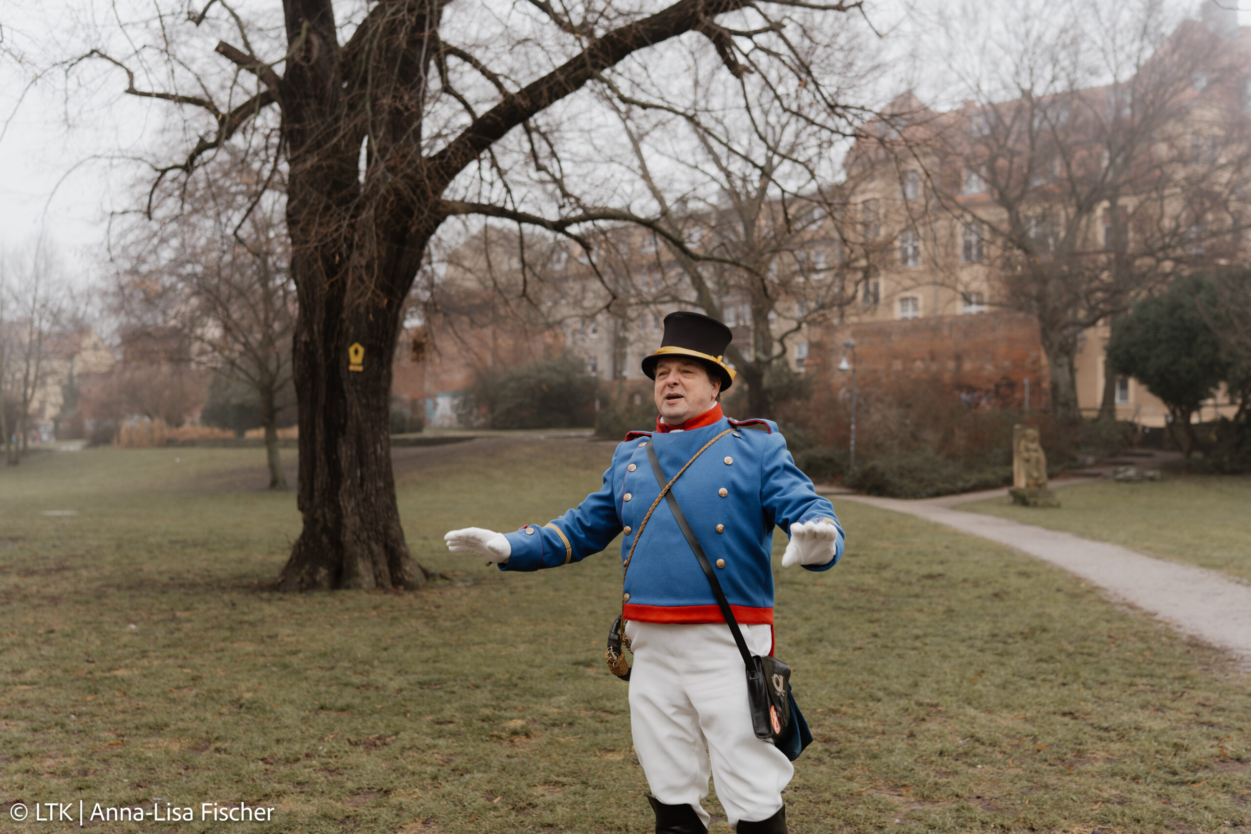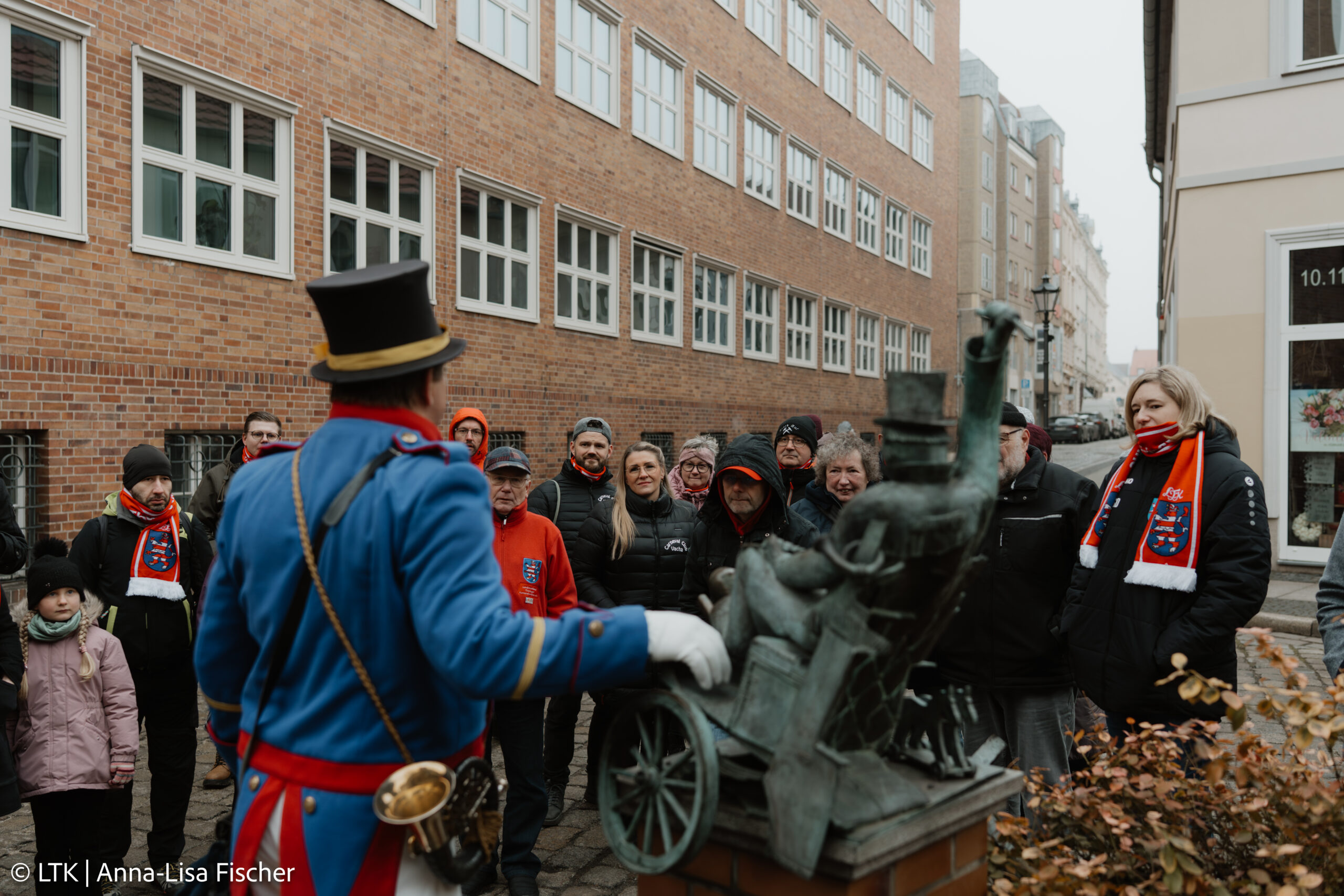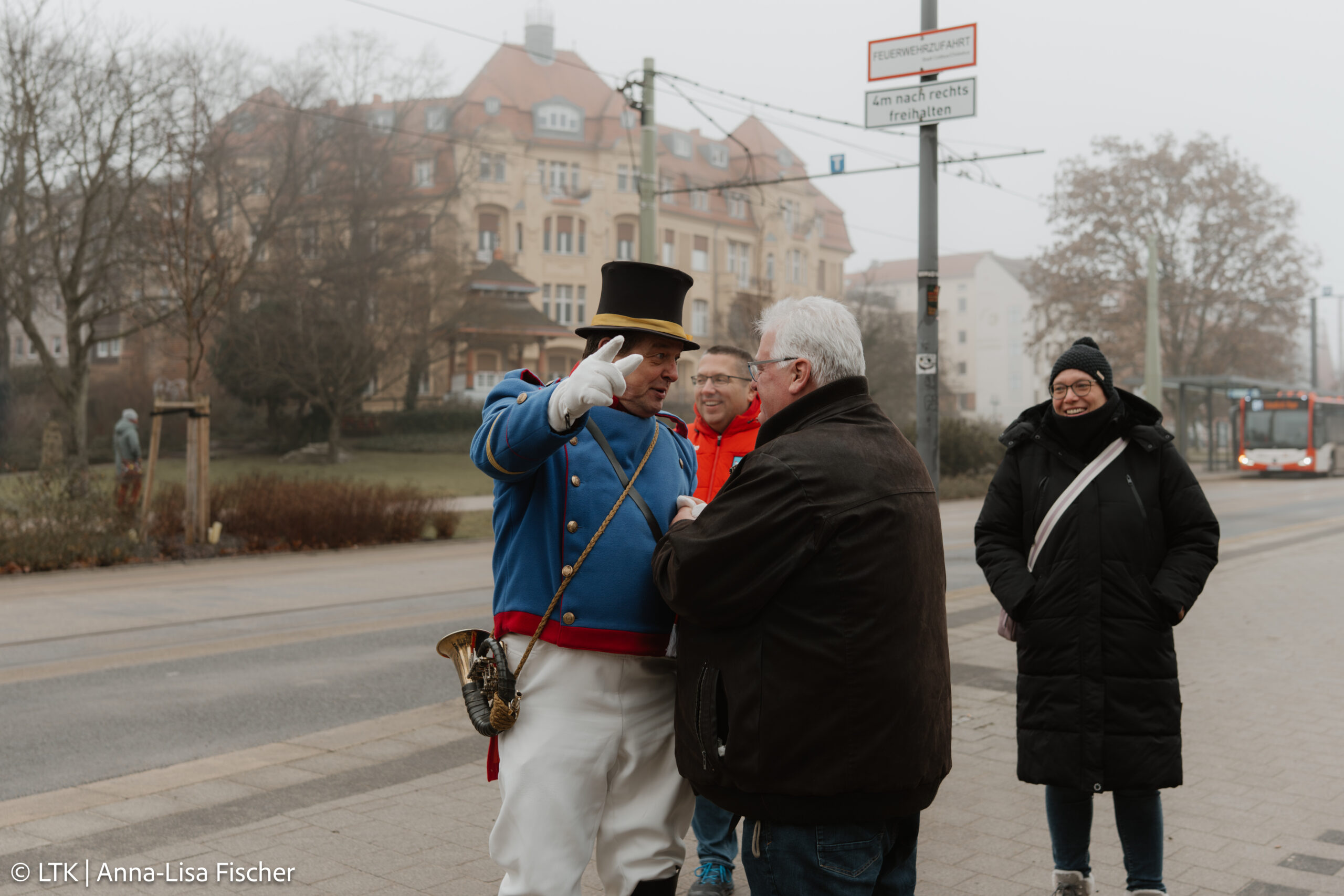 Anschließend entführte uns der legendäre Cottbuser Postkutscher bei nebligem, aber stimmungsvollem Wetter auf eine unterhaltsame, fast dreistündige Tour durch die Stadt – voller Anekdoten, Geschichten und herzerfrischendem Humor.