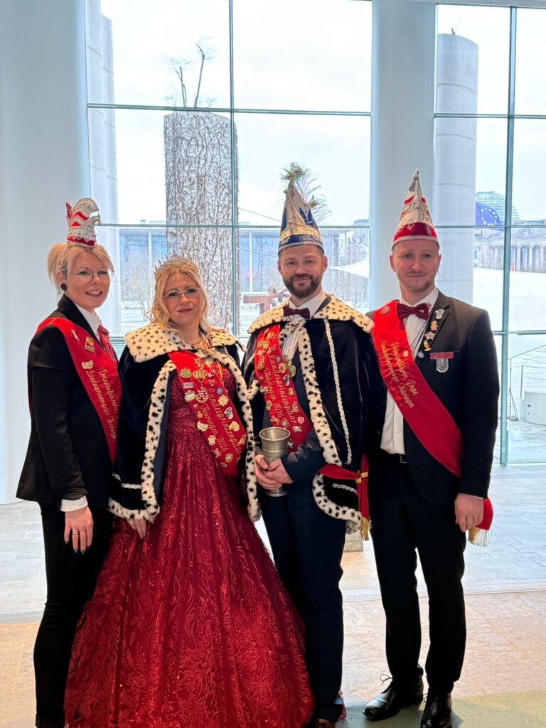 Für das Thüringer Landesprinzenpaar war dieser Empfang ein ganz besonderer Moment: die Einladung ins Kanzleramt, die Wertschätzung auf höchster politischer Ebene und das gemeinsame Auftreten mit Delegationen aus ganz Deutschland machten die Berlin-Fahrt zu einem emotionalen Höhepunkt der Saison.